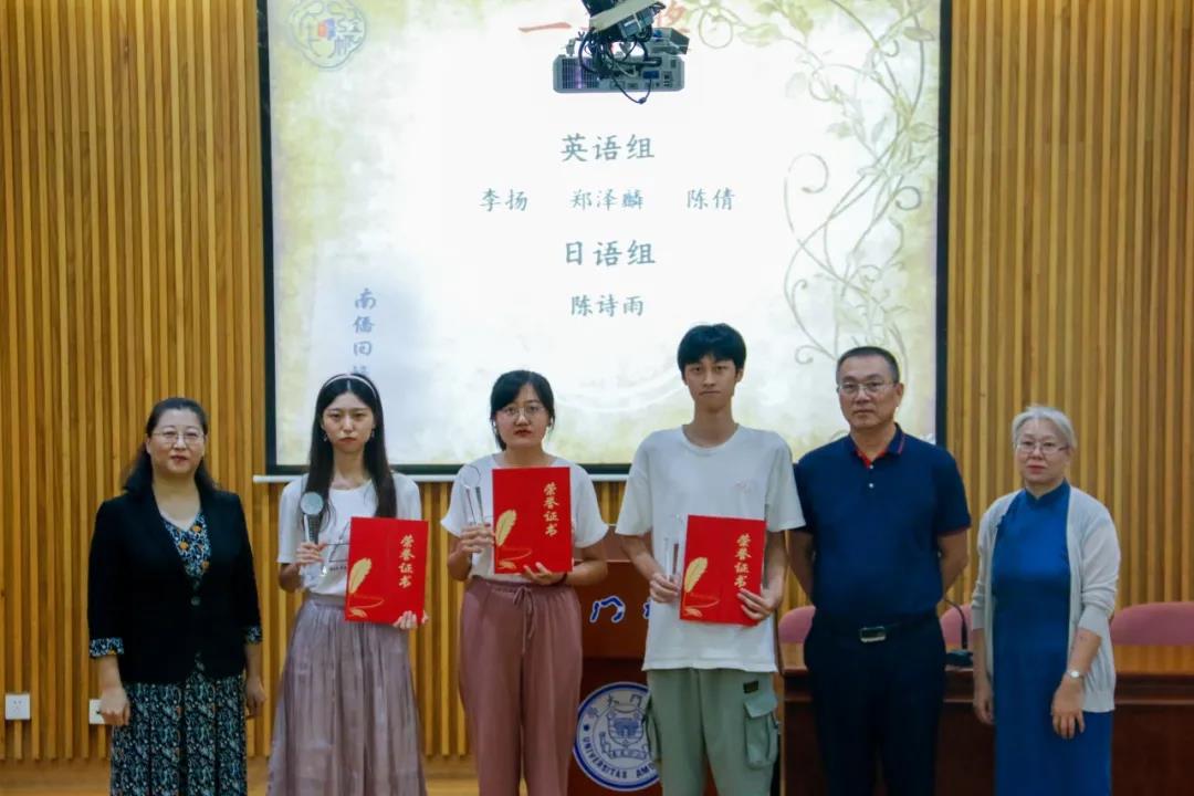 现场还组织观看了《华侨旗帜陈嘉庚》纪录片选段,影片结束后主持人与观众进行现场问答互动并分发精美礼品,增进了同学们对校史的了解和爱国爱校之情。最后,与会嘉宾为获奖选手颁奖。至此,满载收获与成长的第四届厦门大学“译经杯”中华典籍翻译大赛圆满结束。