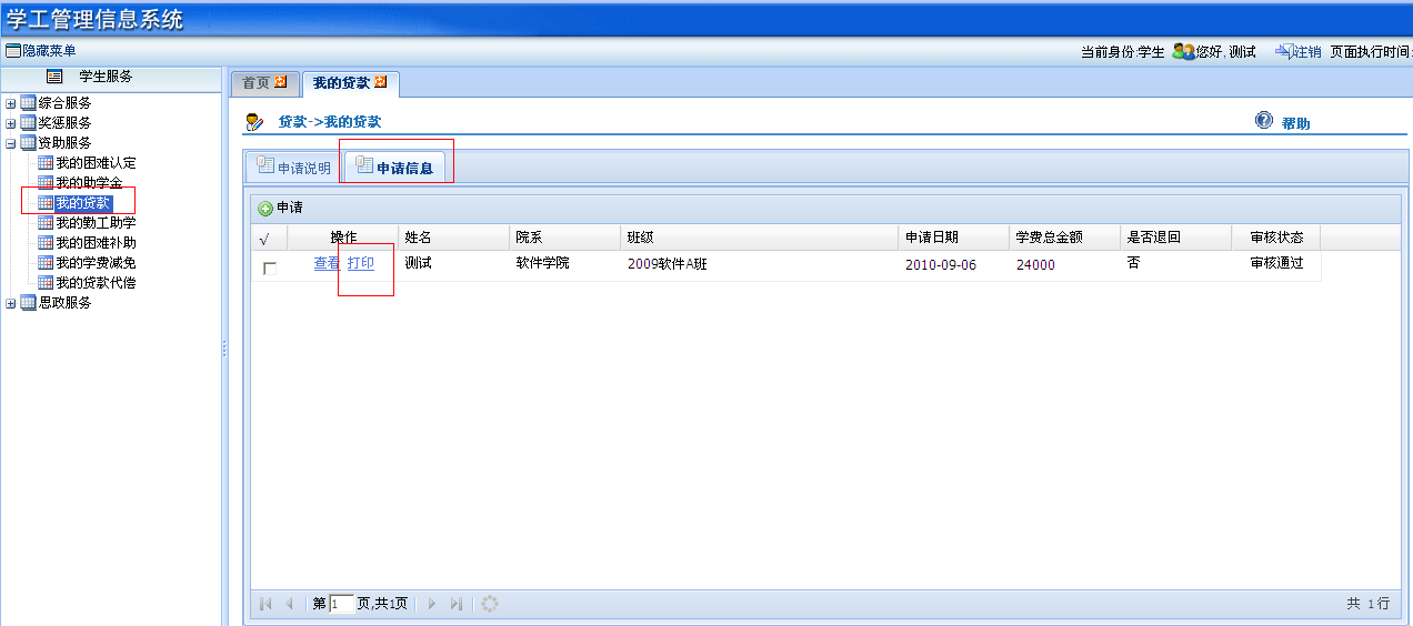 ①学生登录学工管理信息系统“资助服务”—“我的贷款”,可以看到申请说明信息。申请页面如下: