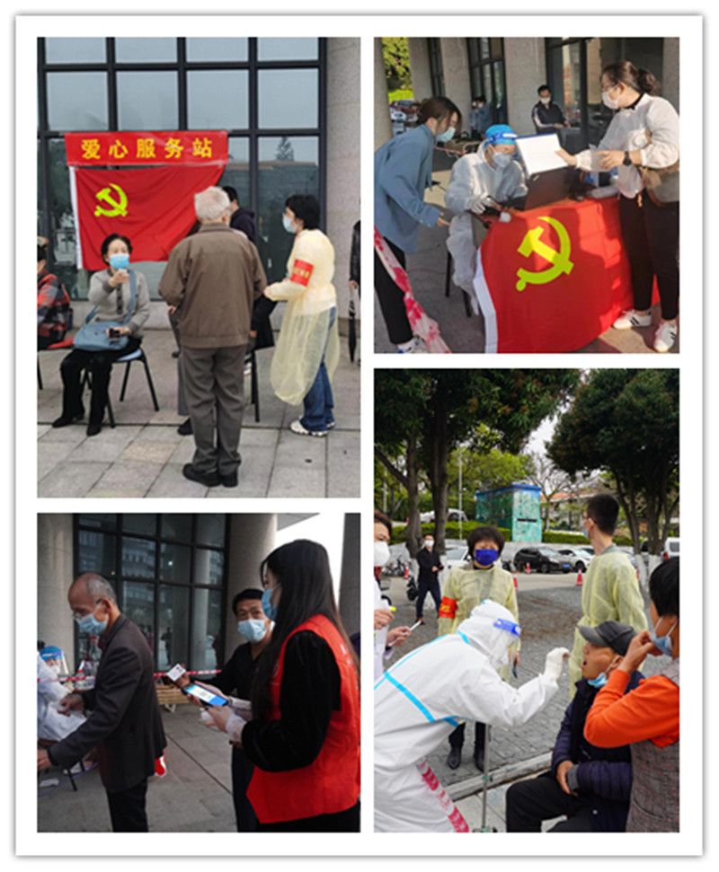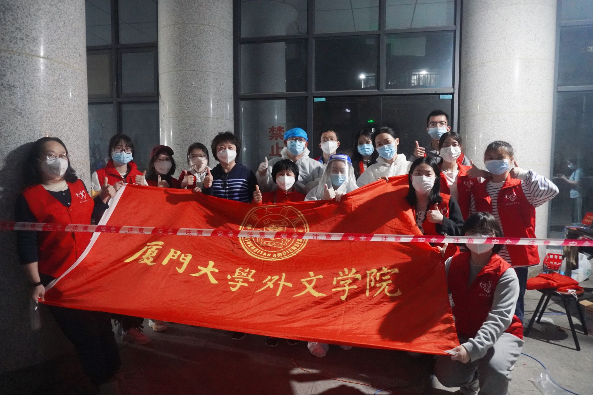 为落实学校有关工作部署,学院党委书记徐琪两次牵头负责白城核酸检测点组织协调工作,以上率下,举旗聚力,号召广大外文师生党员、团员争做抗疫先锋。5名党员报名思明校区应急志愿服务队,多次参与志愿服务;20位外文师生组成的核酸检测志愿服务队2小时内迅速集结。白城社区高龄居民较多,检测点特地设置“爱心服务站”,让老人家“歇歇脚”,采取点对点对接等办法帮助群众做好采样预登记,协调医务人员为行动不便的老人开辟临时的“流动检测台”,主动服务师生群众,获得群众好评。党员、团员闻令而动,冲锋在前,亮出身份,把使命扛在肩上,把群众放在心上,让党旗在疫情防控一线高高飘扬。