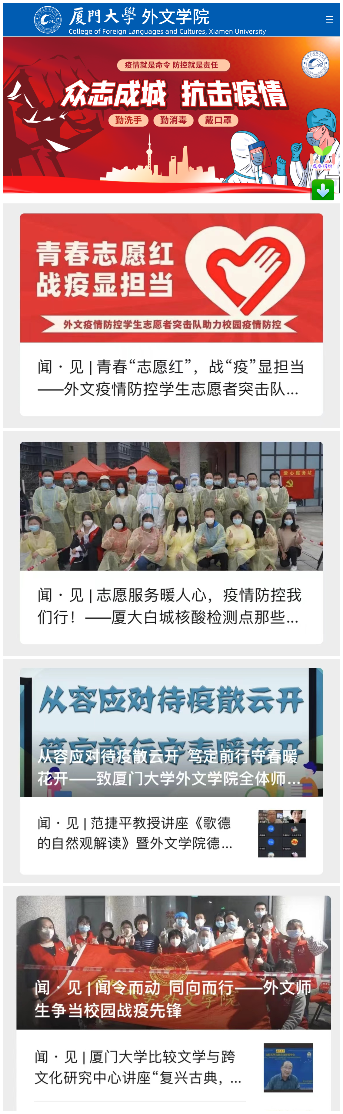 自本轮疫情发生以来,外文学院高度重视、积极应对、全力行动,迅速激活疫情防控应急工作体系,第一时间发布疫情最新政策信息,及时落实各项疫情防控工作安排,引导全院师生自觉遵守疫情防控规定,牢固树立战“疫”必胜的决心和信心,抓实抓牢抓紧疫情防控,守护师生健康安全,共同守护平安校园。