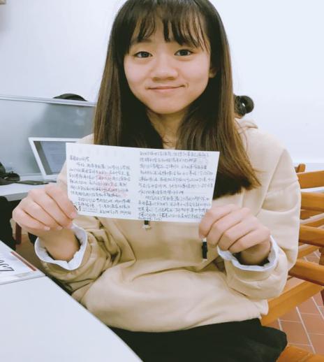 身处在这样一个电子通讯设备高度发达、信息传递更加便捷的时代,沉下心来,安安静静地构思,字斟句酌的写一封信对很多人来说已然变成了一种奢侈。令人感动的是,在繁重的课业压力之下,同学们仍毫不懈怠,精心准备为孩子们准备回信。平日里不拘小节,大大咧咧的男生们对书信的文字反复推敲,如琢如磨,落笔时也是一字一顿。心细的女生们把自己的问候与关切全部倾吐,洋洋洒洒写了数篇文字。来自日本的研一新生永野智子在了解到这次活动后,也主动为孩子们寄去了祝福。