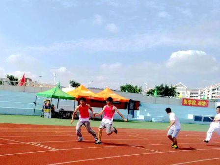 一条跑道,要四个人去打造一个信念;一个终点,要四个人去拼搏一场较量;一根普通的木棒,红白对比刻画出非凡的意义。接力赛,考验的不仅是速度和勇气,更是队员之间的配合跟默契。 运动场上战鼓擂擂,检录处四名运动员正在对比赛战术进行最后的商榷。“每一棒都不能掉以轻心,起跑和冲刺要快,接棒要稳。另外,大家放松心态,不要太过紧张。我们秉着重在参与,快乐运动的精神坚持到比赛的最后一刻。”说这话的是第一棒的运动员许艺海,作为班级的体育委员和研会体育部的骨干成员,他一个人报名多项比赛,积极参加运动会,起到了很好的带头作用。训练时由于强度太大,左膝旧伤复发,但他仍坚持比赛不掉队。他说“接力赛最重要的是团结。可能单独来看,我们每个人都是形状独特的拼图,但比赛的时候,要有效拼接,才能呈现出精彩图案。” 正如许艺海所说。比赛哨声一响,他就似离弦的箭一般飞奔出去。善于起跑和提速的他是第一棒队员的不二人选。第二棒则是性格稳健的吴恭超,速度也不甘示弱,跟前一名运动员拉近了距离,完美地完成了接棒递棒的神圣仪式。人高马大的夏虎作为第三棒出场,拿到棒的那一秒钟,他没有丝毫迟疑,飞快地冲重围,为第四棒的冲刺赢得了有利的时间。最后一棒的冲刺者,是耐力与速度并存的张广锡,凭借着强大的耐力和拼搏的精神,为接力赛程圆满地划上了句号。 “在接到棒的那一瞬间,我心中升起一股强大的力量,感到我们四个全部的热情都寄托在我身上。我必须全力以赴,直至终点。”张广锡如是说。“这一根小小的木棒,传递的是勇气和力量,连接的是团结和友爱。我很庆幸和他们并肩作战。” 当被问及参加此次运动会的最大感悟时,吴恭超说:“我觉得运动会最重要的是与运动息息相关,休戚与共的过程。在体验中,我们已经领略到运动的大成之美。现在的大学生,尤其是研究生,走出来运动的人太少了。‘宅’似乎是一种潮流,但‘动’才是真正充满智慧的生活方式。”夏虎也表示“希望有更多的学生参与到运动中来,体验运动的魅力,塑造健康的体魄。” 外文学院虽男少女多,但参加男子4*100m接力赛的运动员们一表人才,玉树临风,毫不逊色于其他参赛选手,是外文学院当之无愧的招牌F4,为外文学院的体育事业带来流星雨般绚烂的明天!