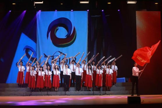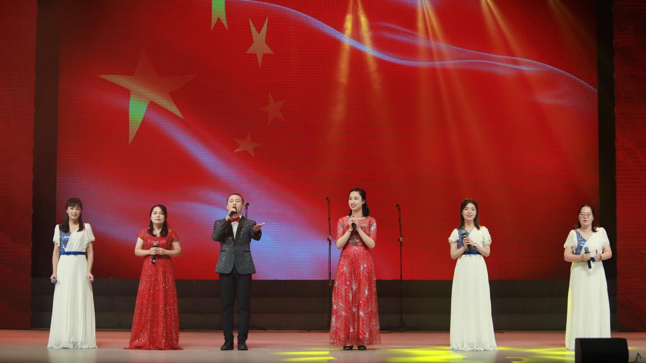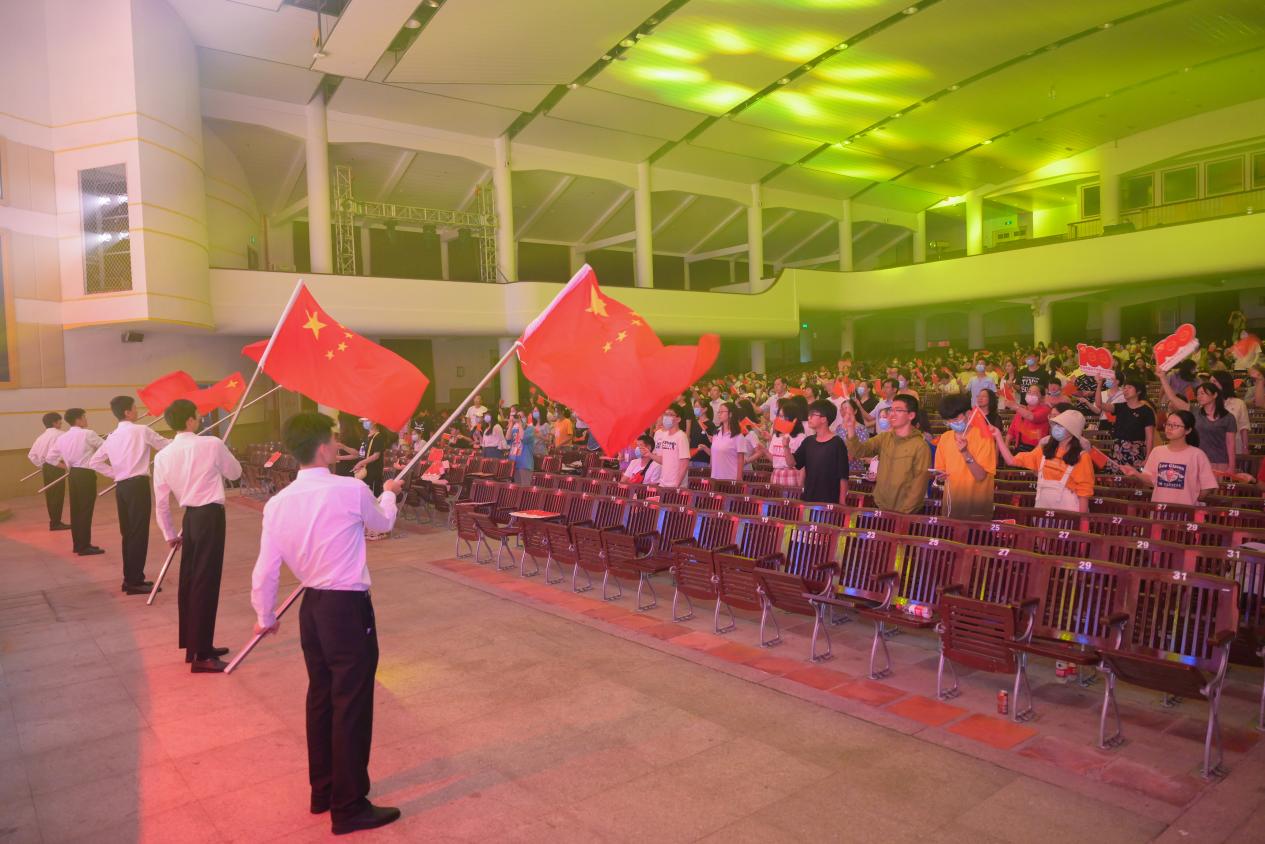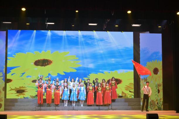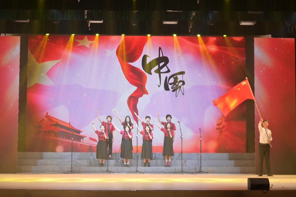 汇演最后,一首雄壮激昂的《歌唱祖国》将现场气氛推向了高潮,歌曲尽显中国人民的斗志昂扬和伟大祖国的蒸蒸日上,激发了全场观众的强烈共鸣。大家纷纷挥舞着手中的国旗,共同唱响献给祖国的赞歌。