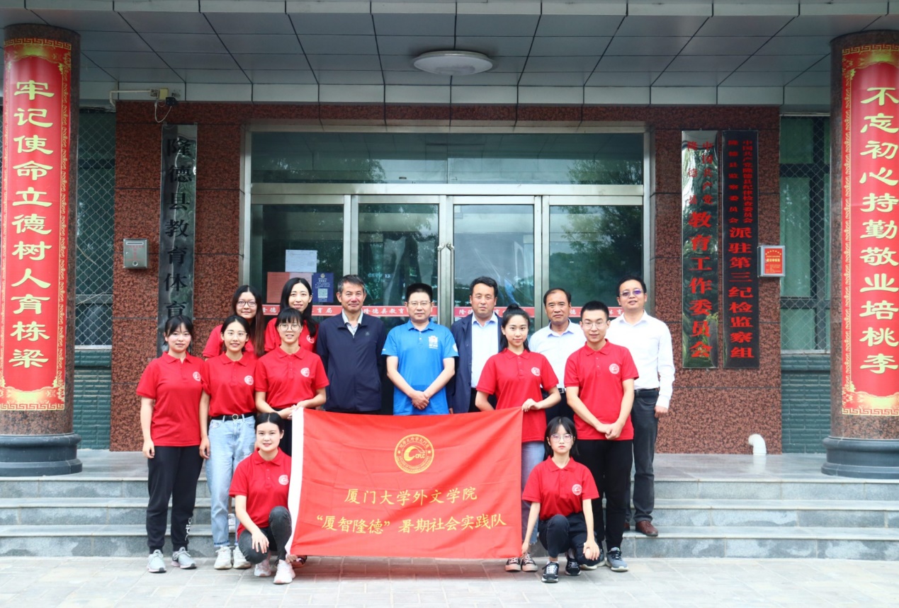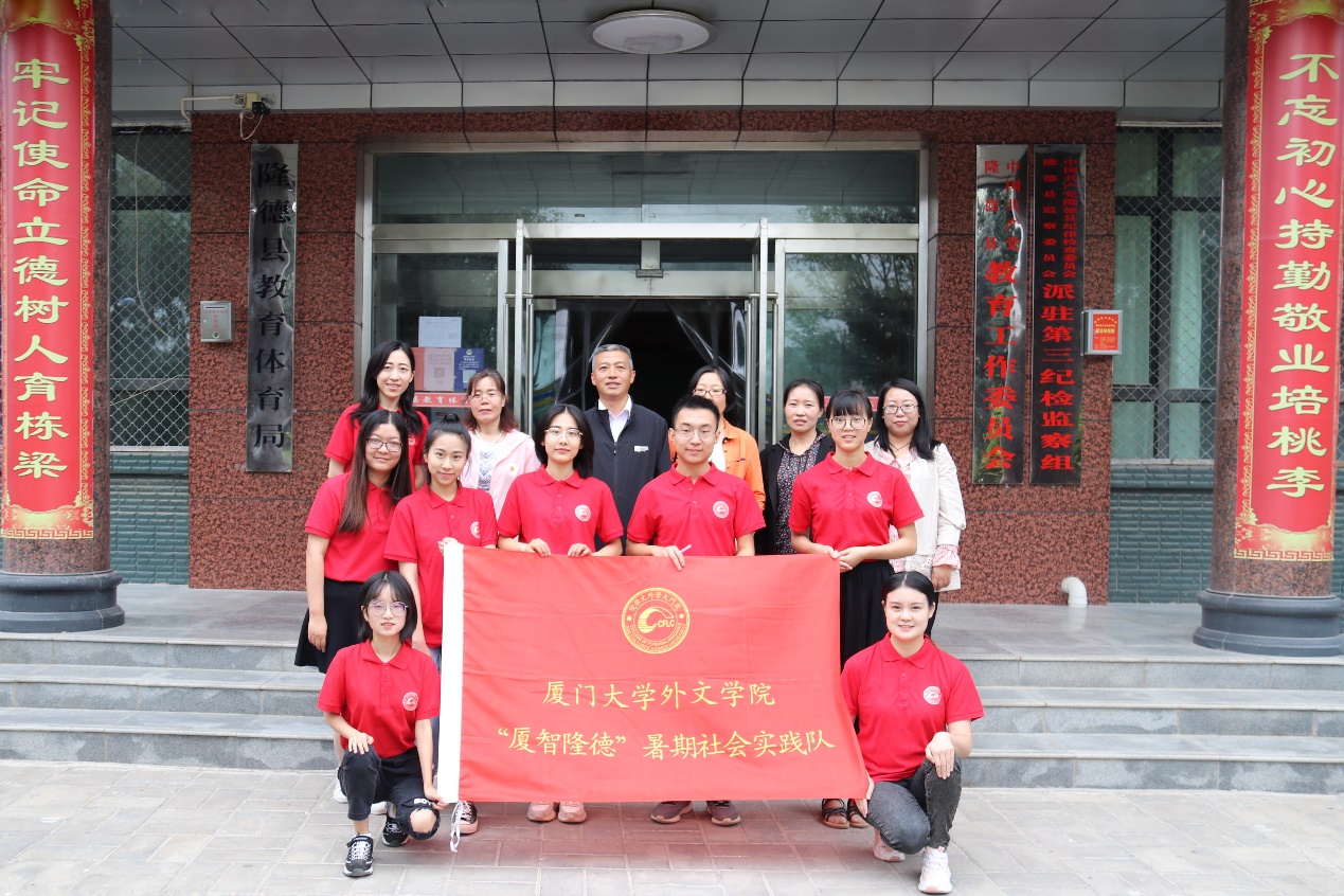扶贫先扶志,扶贫必扶智。2020年是脱贫攻坚决战决胜之年,为深入贯彻落实习近平总书记在决战决胜脱贫攻坚座谈会上的重要讲话精神,助力贫困地区打赢脱贫攻坚战,厦门大学外文学院“厦智隆德”暑期社会实践队在学院党委副书记杨云良、外语教学部助理教授刘浩然和辅导员杨盛澜的带领下赴宁夏固原市隆德县开展社会实践。8月3日至4日,实践队深入走访调研英语师资情况和英语教育教学现状,并与隆德普通高中教育集团就外文学院定点扶贫工作方案进行了洽谈,进一步推动对口帮扶项目的落实。