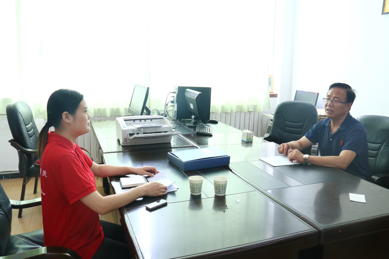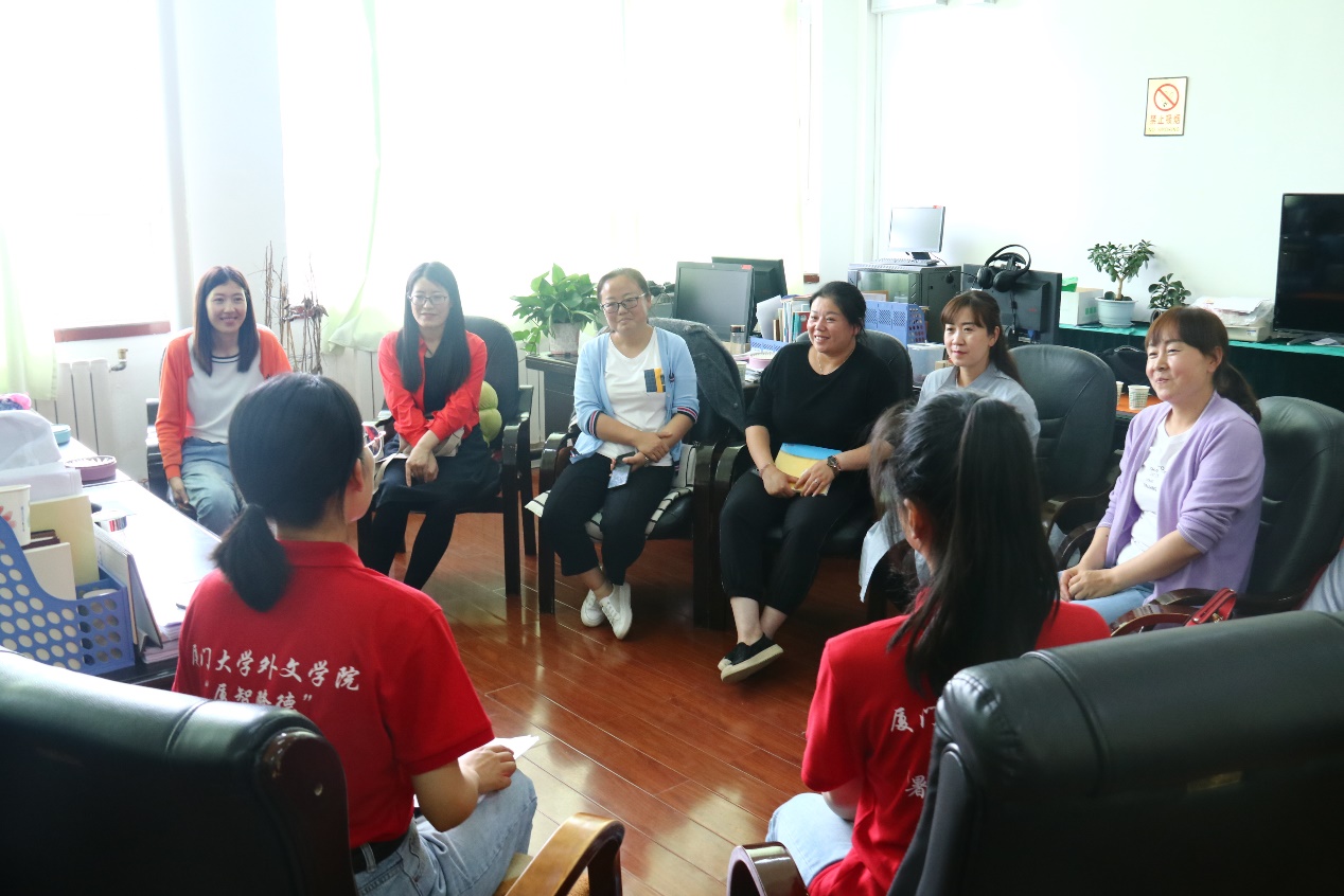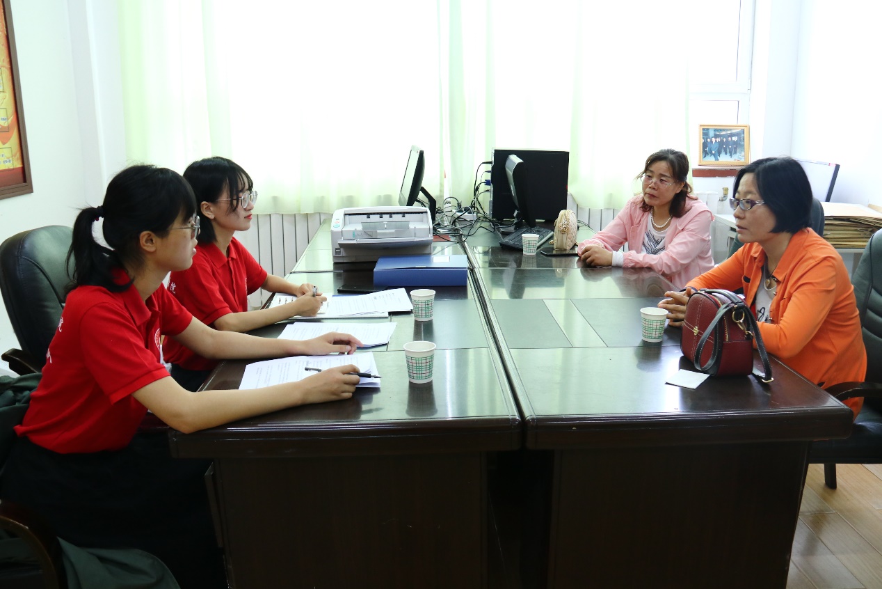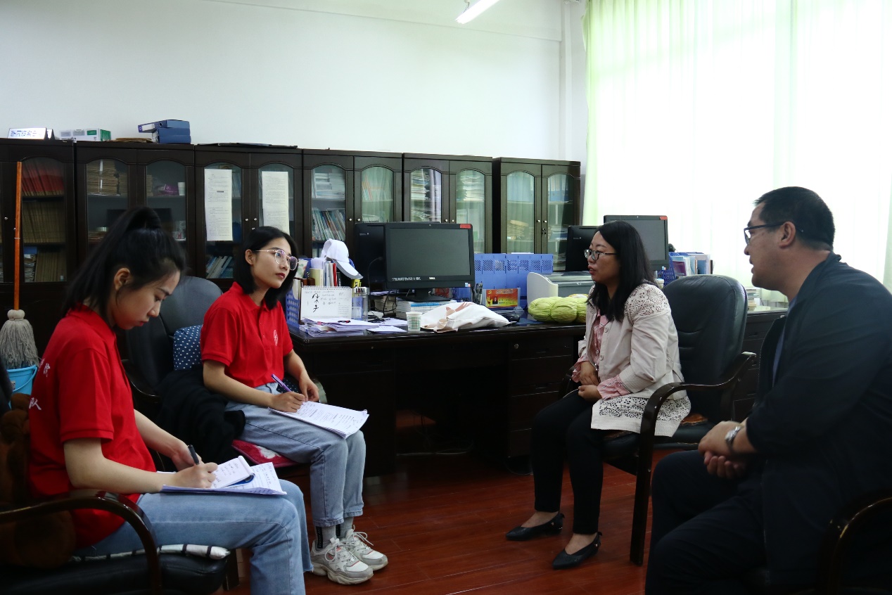 实践队与职教中心分管校长(左)、英语教研组组长(右)进行访谈