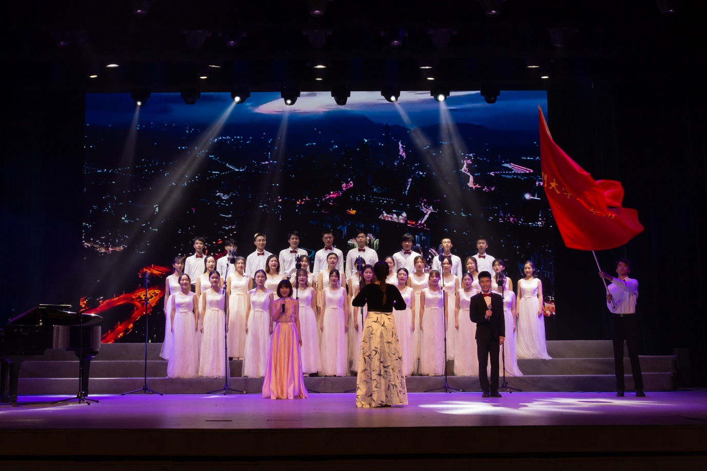 519日晚,“青春心向党,建功新时代” 厦门大学第七届校园合唱节汇演在建南大会堂举行。外文学院合唱团先以一段深情的朗诵赞扬了烽火岁月里先辈们不屈不挠、玉汝于成的奋斗精神,激励当代青年以更加昂扬的精神面貌迎接新时代的到来。之后,外文学院合唱团为在场师生们演绎了歌曲《天耀中华》。外文学子用深情的歌声诉说着对祖国的美好祝福,展现出他们心怀祖国、与党同心的情怀和为中华民族伟大复兴做出贡献的坚定信心。