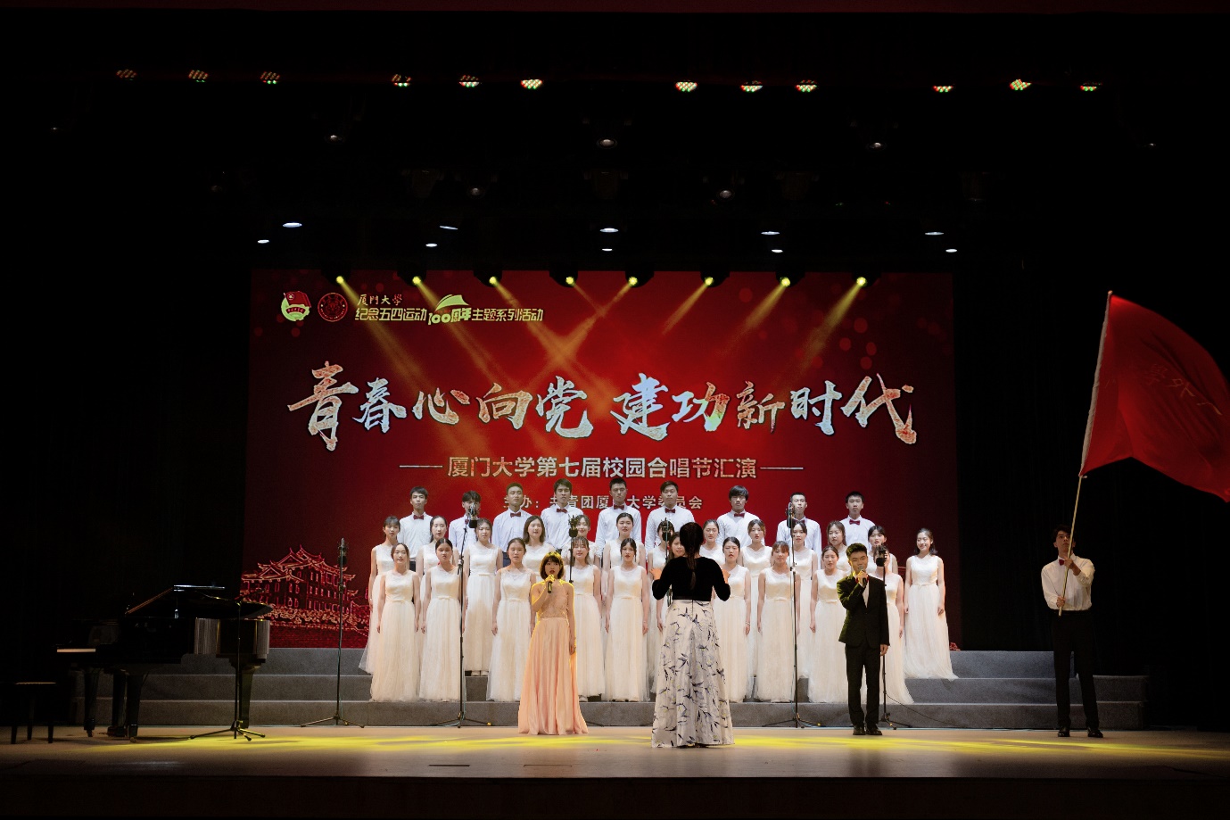 58日至519日,为庆祝中华人民共和国成立70周年、纪念五四运动100周年,引领广大青年弘扬以爱国主义为核心的伟大民族精神,坚定“四个自信”,营造和谐、向上的校园文化氛围,“青春心向党·建功新时代”厦门大学第七届校园合唱节在厦门大学思明校区举行。来自26个学院合唱团的近千名学生参与了此次合唱节,外文学院合唱团以悠扬的歌声和极富感染力的演绎,充分展现了外文学子昂扬的精神风貌,在歌声中弘扬五四精神,唱响青春中国梦。