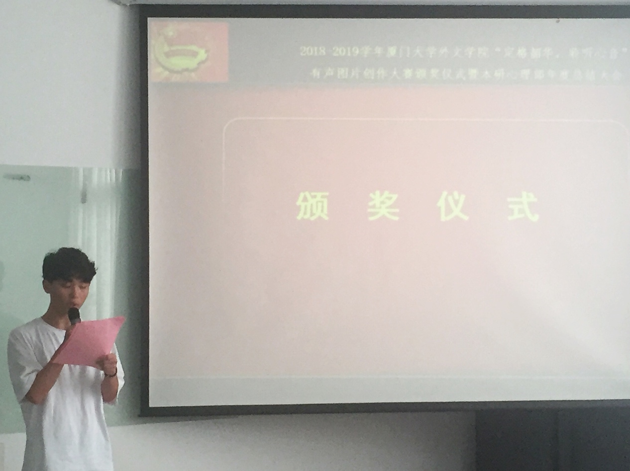 为纪念五四运动100周年,促进大学生心理健康素质与思想道德素质、科学文化素质协调发展,引导青年学生树立自尊自信、理性平和、积极向上的健康心态,外文学院于今年“5·25”全国大学生心理健康月举办了“青春心向党·建功新时代”厦门大学纪念五四运动100周年主题系列活动之“发现‘心’美好,悦纳新自我”系列活动,并于7月11日召开“定格韶华、聆听心音”有声图片创作大赛颁奖仪式暨本研心理部年度工作总结大会。