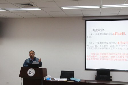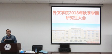 1月15日,外文学院2018-2019学年秋季学期研究生年级大会于德贞楼112顺利举行。大会由外文学院团委书记、研究生辅导员乐无恙主持,乐老师分别从规章制度、考勤纪律、寒假安全、就业分析和新学期工作等五个方面做了详尽细致的强调和说明。我院2015—2018级硕博研究生分批参加了大会。