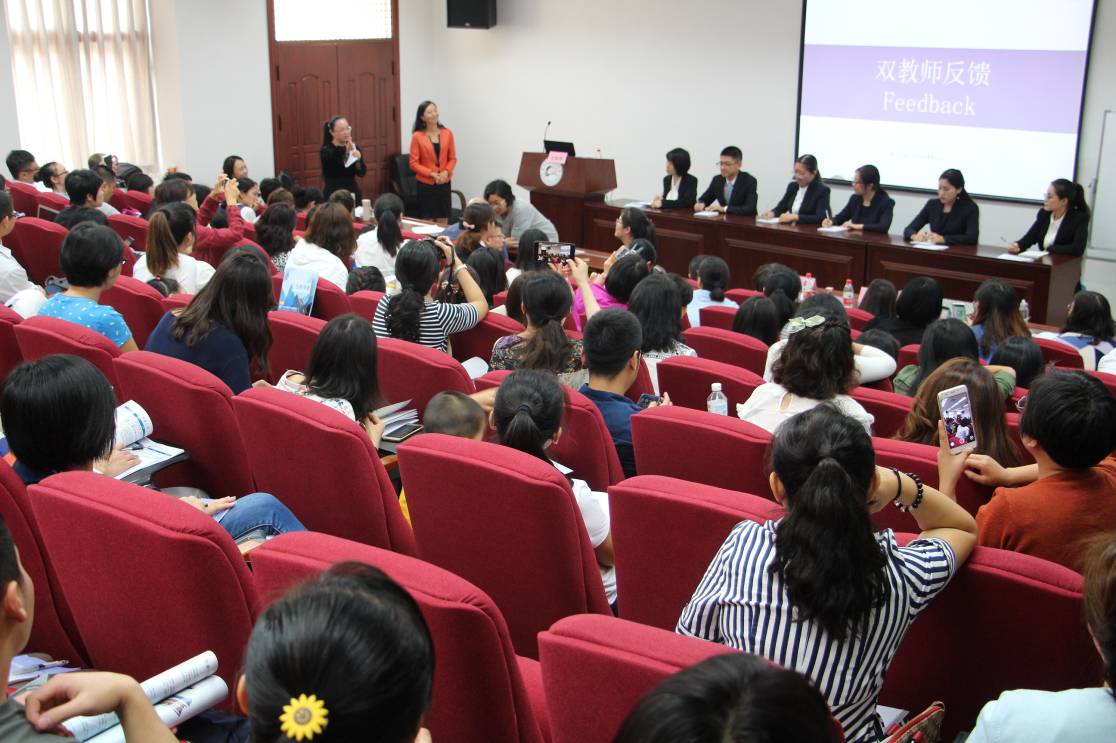 课程的最后,肖老师邀请发言人、现场的美国留学生以及口译组的老师对全场译员的表现进行了精彩的点评。经历这么一场全真模拟会议,口译学子们也意识到了自己在情绪传达和语言表达等方面仍然存在的问题。