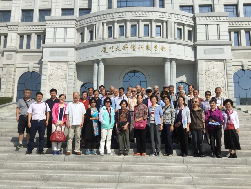 首先,老师们来到厦大翔安校友参观,在校区乘车游览后,大家先在图书馆前合影留念,然后在校区办工作人员引导下参观图书馆。