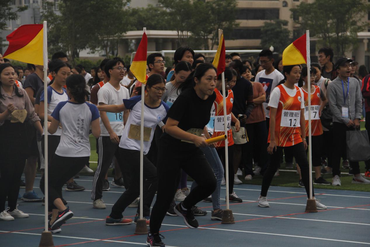 除了接力项目外,还有两个万众瞩目的集体项目,更是对团队凝聚力的考验,那就是本、研都有、男女混合的10人×30米袋鼠跳接力赛和30人×60米接力赛。
