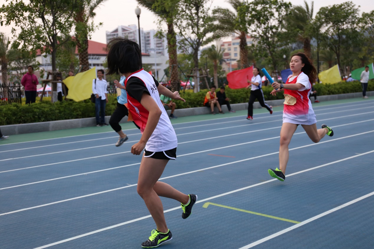 咦?跑道上怎么架起了障碍,还让不让人好好比赛了?哦,原来是要进行100米栏的比赛了!看,场上那一抹红色的身影正是2016级英语专业笔译方向研究生吴翠莲,她大步跨栏,势不可挡,脱颖而出,取得第八名的成绩。