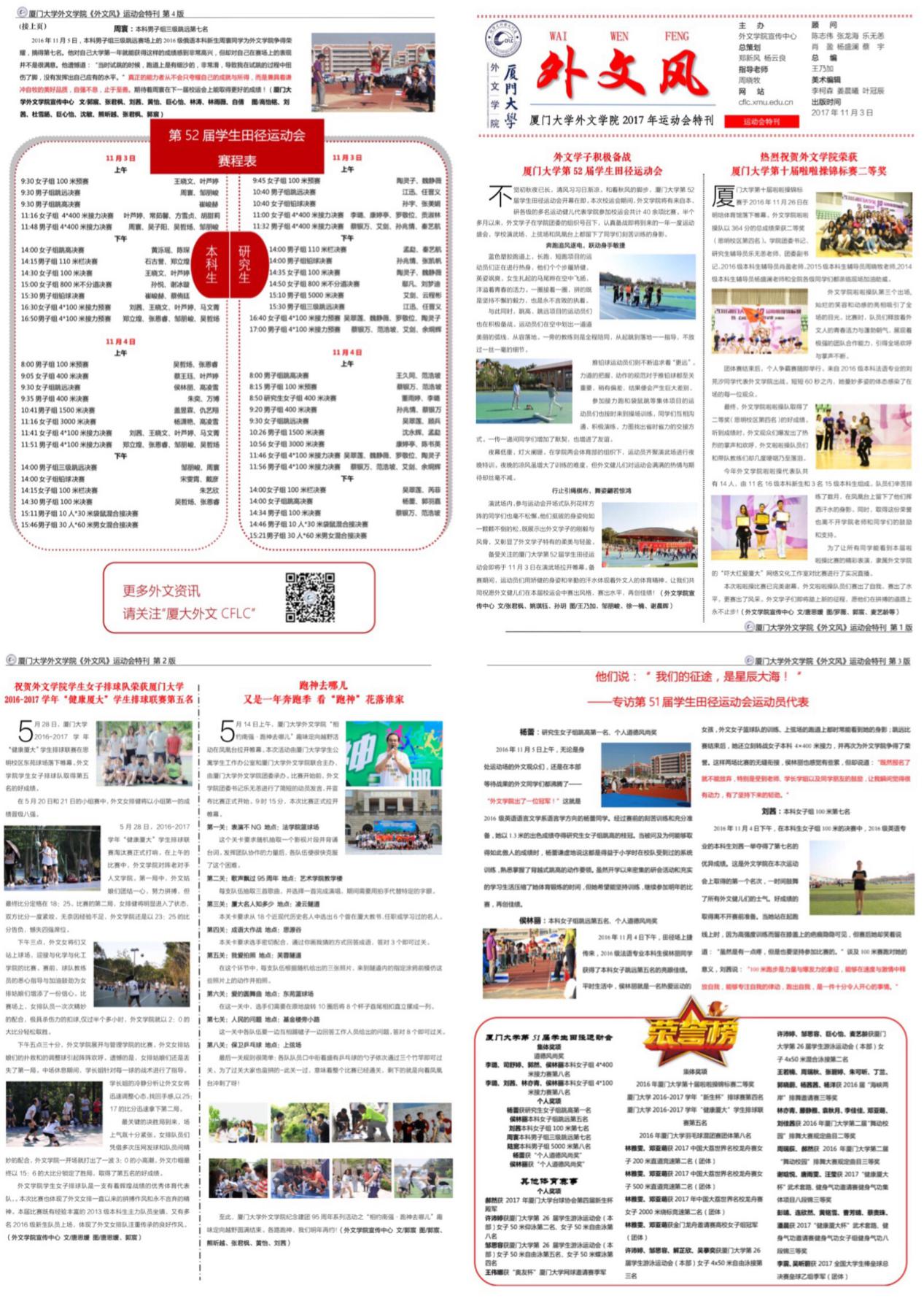 厦门大学第52届学生田径运动会外文学院赛事荣誉榜