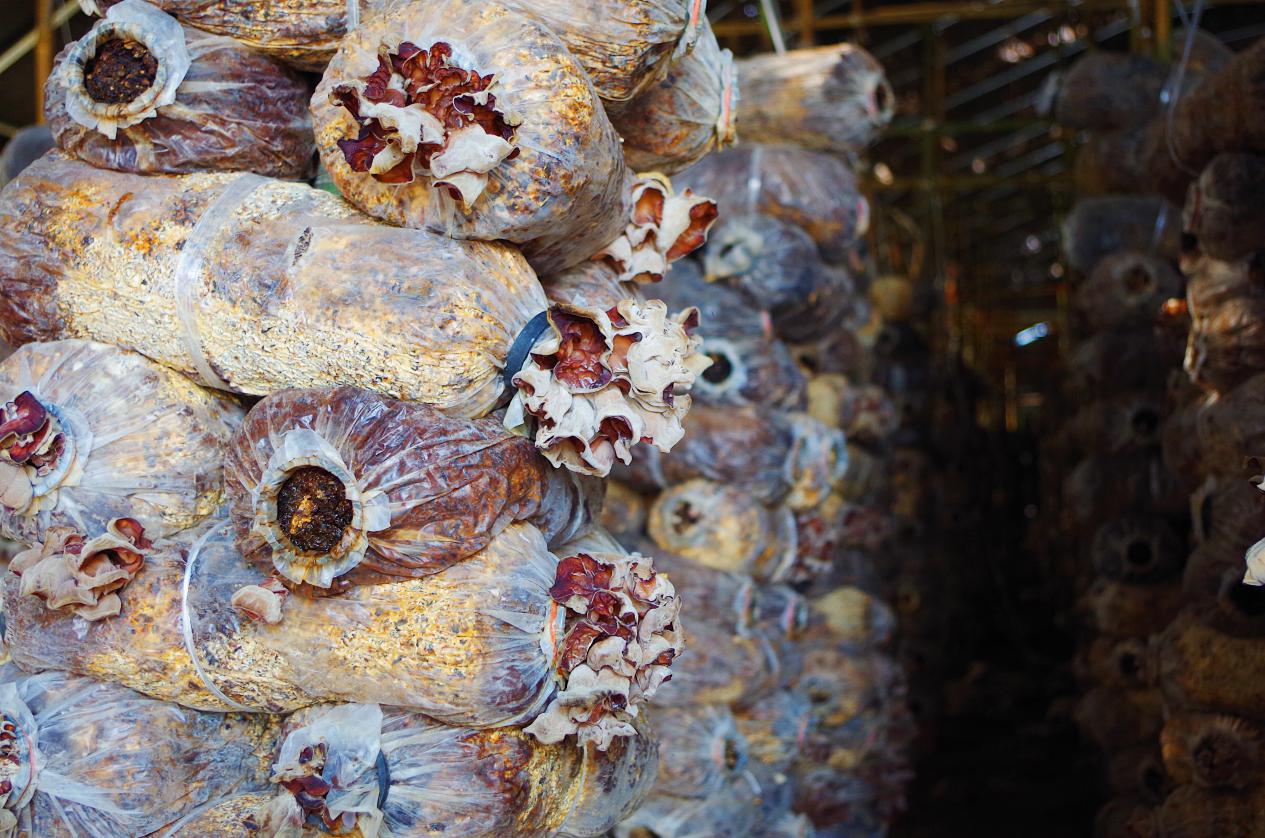 当地农民向队员们介绍,蘑菇的生长期是每年九月份到来年四月份,木耳则是从每年的二月份长到八九月。不种蘑菇木耳的时候农民可以把棚子收起来,留出空间来种玉米。这样的农业设计充分调动有限的时间和空间资源,让土地产生更大的价值。