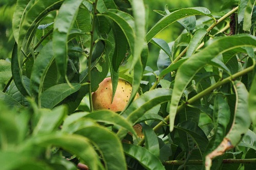 农民无心经营导致桃子虫眼遍布