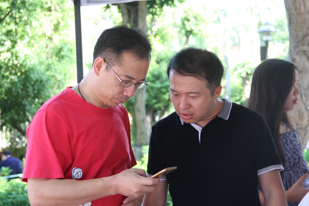 在炎炎烈日下辛勤忙碌的,除了注册组的志愿者们,引导组、行李组和宣传组的同学们也在烈日下辛勤地忙碌着。引导组的同学们高举外文学院院牌在校门口等候新生并将他们引导至迎新点;还有些引导组的志愿者来往于与注册点与宿舍之间,为新生们带路并介绍校园;行李组的同学们则守在行李运送点,为新生们送行李并仔细做好登记领取工作;宣传组的同学在世界地图前为每个新生拍照留念,将他们初进校园的灿烂笑容永久保存在相片之中,并引导新生们和家长们扫码关注外文学院官方微信平台“厦大外文CFLC”获取学院的最新资讯。