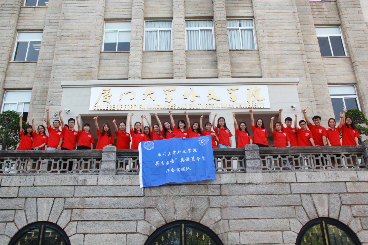 最后,指导老师、实践队队员、夏令营营员在外文学院凤凰台合影留念,至此,本届“英言厦语”暑期英语夏令营落下帷幕。