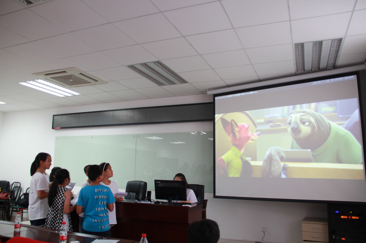 高年级一班带来的节目是电影配音《疯狂动物城》。小营员们的配音丝毫不比原作逊色,独有的稚嫩天真、古灵精怪为电影更添三分童趣。