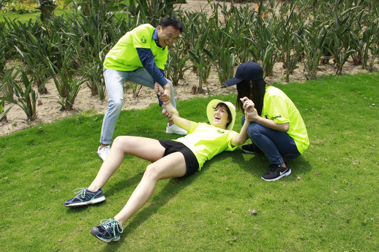到达植物园后,同学们首先来到了梅海岭,这里道路两边都是美丽的三角梅,开得甚是热烈。大家纷纷和三角梅合影留念,在初夏的旖旎风光中留下了青春的印记。顺着热情的三角梅一路走去,很快便到达了花卉园。在这里,各式各样的花灿烂地开着,点缀在如茵的绿草地上,走倦了的同学们在附近的亭中坐下,一边休息,一边闲聊,也开始了野餐和游戏。