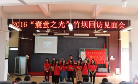 随后,实践队队长马超群汇报了实践成果,向大家介绍了此次实践的特色,即在队员组成、支教课程、支教和调研相结合等方面具有多样性,并向大家展示了调研报告。接着,实践队向竹坝学校赠送实践光盘及队服。大家随后一同观看了纪念视频,伴着音乐和一张张照片,往日回忆涌上心头、湿润眼眶。最后老师们、回访队员们和竹坝学校的小朋友们一起合影留念。