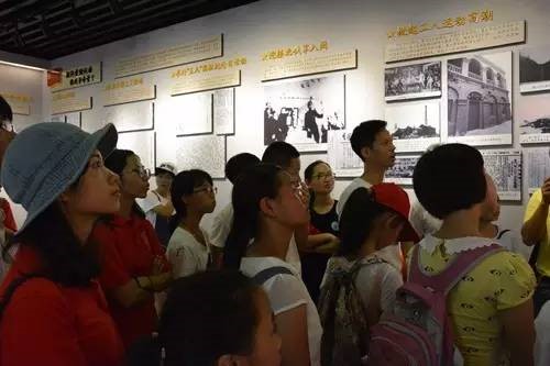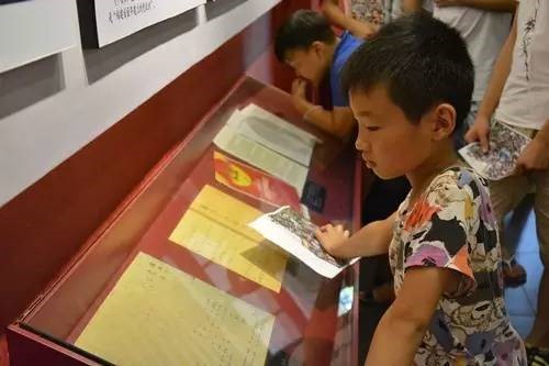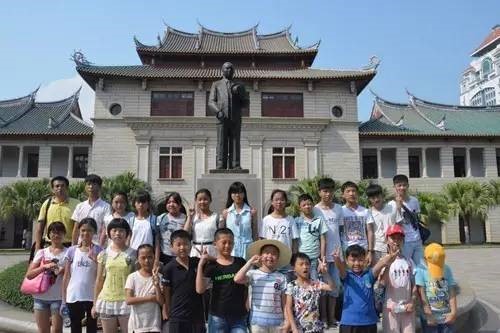 小朋友认真地参观革命史馆  小朋友们在陈嘉庚先生铜像前合影留念