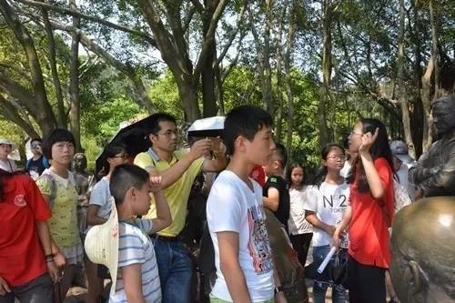 7月29日,厦门大学外文学院“英言厦语・快乐心象”实践队全体就要与安溪县湖上中学小朋友分别了。一周前,队员们满怀期待地来到这个宁静的乡村;今天,队员们带着满足与不舍离开。一周的日子,说起来并不是很长,但带给实践队所有成员的感动确是无法衡量的。 为了让小朋友们进一步感受大学的魅力,鼓励他们树立高远的目标,“英言厦语・快乐心象”实践队和湖上中学校长挑选了28名表现优异的小朋友,带领他们游览厦门大学并了解它。 经过三个多小时的舟车劳顿,实践队和湖上中学全体师生抵达了厦大。在芙蓉餐厅简单用餐休息后,实践队队员带领小朋友们开始有序地游览厦大。首先,何子琪同学在芙蓉湖畔为小朋友们介绍了芙蓉湖的名字由来、对面的颂恩楼,并参观了陈嘉庚先生与他的学生的铜像,告诫同学们要养成尊师重道的良好品德。在简单参观完图书馆后,实践队队员与小朋友们在讲解员的讲解下,参观革命史馆,了解厦大建校与发展历史,进一步了解厦大精神。最后,大家参观了美丽的上弦场与建南大礼堂。 在两个小时的简单游览后,实践队队员与小朋友们到达外文学院院楼南光三319教室对此次游园进行总结。首先,实践队队员为小朋友们播放了厦大介绍视频,让大家更好地了解厦大。随后,实践队教学组的同学们发表了对湖上中学学生一周表现的感想并表达了对他们的衷心祝福。小朋友们和校长也对本次社会实践发表了感想,孩子们简单朴实的话语流露出对老师的感谢之情、对未来的向往追求,这些真情是这次实践活动无比重要的价值意义。这次游历的带队老师钟德城老师也告诫学生,希望同学们铭记此次实践所带给他们的无比重要的意义,把握机会,感恩回报,有所梦想,为之奋斗。最后,王福来校长发言,希望同学们经历这次游园活动要有所感悟,并确定恰当的近中远程目标,考上心仪的高中。 在小朋友们回校之前,实践队队员与他们在外文学院院楼前的凤凰台合影留念,此次厦门大学外文学院“英言厦语・快乐心象”暑期社会实践活动也就到此结束。支教的意义不仅是将良好的教育带给小朋友们,更是将求学之心传递给他们,为他们带去希望、前进的方向!  实践队队员带领小朋友参观芙蓉湖