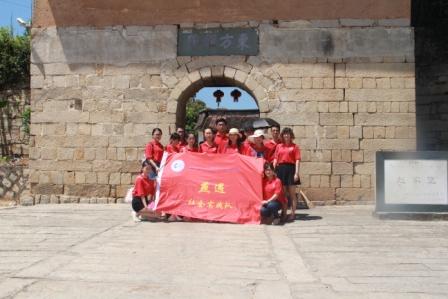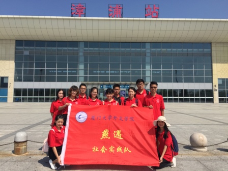 7月24日到7月29日,厦门大学暑期社会实践重点团队――外文学院“燕遇”社会实践队在福建省漳浦县开展了为期六天的社会实践活动。实践队一行包括一名带队老师和两名兼职辅导员在内,一共14人。实践队此行的目的是通过对漳浦县内燕尾厝的实地考察和对当地居民及相关艺人的走访,达到了解、宣传和保护燕尾厝的目的。 燕尾厝是指屋顶正脊采用了“燕尾脊”形式的房屋。而“燕尾脊”是两端线脚向外延伸并分叉,形似燕尾的屋脊。漳浦地区分布有许多保存较为完好的燕尾厝,这些现存的燕尾厝多为漳浦古代名人望族的故居或者家族祠堂。不仅建筑精巧,而且拥有深厚的文化底蕴,具有很大的研究价值。但近些年来随着城镇建设的推进,传统的燕尾厝日渐稀少,因此引起了实践队的关注。 实践队于7月24日上午,从厦门大学出发抵达了漳浦县城。在经过简单的安顿和休整之后便开始了紧张而丰富的实践调研活动。实践前几天,实践队的活动主要在漳浦县城内开展。先后在黄道周纪念馆、陈秋日剪纸艺术馆、蔡新故居、漳浦县博物馆进行了调研。在调研过程中,实践队的队员们积极向相关的管理人员了解情况,认真观看馆内的展物展板,基本上了解了漳浦县的发展历史、名人名迹以及主要的传统文化和技艺,为接下来的实地考察积累了充分的文化储备。 7月25日至27日,实践队开始了对漳浦燕尾厝的实地考查。实践队考察的地点均是漳浦当地具有代表性的燕尾厝遗址,包括旧镇镇海云家庙、秀才村燕尾厝建筑群、杨氏宗祠、赵家堡、蓝廷珍府邸、诒安堡等。这些民居家庙和古代城堡都采用了“燕尾脊”的建筑样式,形式优美结构精巧。尤其是几座古堡,虽然因为年久失修而残颓,但依旧重檐飞脊,高墙厚瓦,古朴大气,同时也雕梁画柱,小桥流水,不失精巧细致。这些古堡的主人或为皇室遗孤,或为封疆大吏,使这些古堡拥有了深厚的历史文化内涵,具有很高的艺术、科学、历史和文化价值。在考察过程中,实践队员对燕尾厝中的居民进行了访谈,了解了燕尾厝的历史,现状以及居住的舒适程度等。通过这些考察和访谈,队员们对燕尾厝有了进一步的了解。 完成计划中对燕尾厝的考察后,28日,实践队同漳浦县政协进行了座谈。参加座谈的还有漳浦县博物馆工作人员,县文化馆张建阳馆长,厦大1964届校友、燕尾厝研究者林建东先生。座谈会上,大家就漳浦燕尾厝的发展、现状和保护进行了谈论,整场座谈会讨论紧张而热烈,队员们收获颇丰。28日晚上,实践队驱车30多公里,前往赤湖镇山油村探访了修建燕尾厝的老艺人,实践队员从老艺人那里了解到目前燕尾厝的建造日益减少,建造技艺的传承情况也令人堪忧,他希望对燕尾厝的保护能及早引起更多人的关注。当天,实践队还参观了漳浦县天福茶博园,对漳浦的茶文化进行了全面细致的了解。29日,实践队启程返回厦门,此次暑期社会实践活动的漳浦县实地考察部分圆满结束。“燕遇”实践队的队员们在这几天的实践中,细致观察,全面访谈,认真纪录,科学分析,用无比的热情为燕尾厝的研究保护做了大量的工作。接下来,实践队的后期总结工作会继续进行。队员们表示自己依旧会全身心投入,为燕尾厝的保护做出贡献。 在本次实践过程中,实践队还成立了临时党支部,对实践活动进行组织和领导。 这次社会实践活动,六天,十四名队员,三座古城堡,两座宗祠,一个建筑群,目标只有一个――燕尾厝。而“燕遇”之名正是取意于“遇到燕尾厝”。也确实如队员们所愿,实践队在这六天的实践中遇到了古城堡,也遇到了燕尾厝,但更遇到了厦大“自强不息,止于至善”的精神。虽然为期六天的实践已经画上句号,但这种精神定将激励队员们在今后的学习生活中继续前进。  燕尾脊全貌