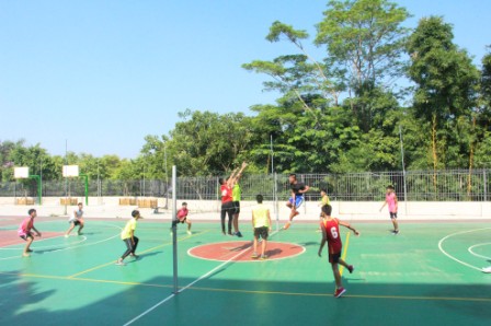 受竹坝排球精神的感染,我们实践队员们也跃跃欲试,尝试和一群低年级“专业球员”比拼了一把,结果并不重要,重要的是他们实力之强让我们着实钦佩。另外,在教练的组织下一群孩子为我们进行了一场精彩的排球比赛,其中几个大高个男生引起了我们的注意。竹坝学校主要是由小学部和初中部组成,上到初三学生,下到一年级学生,大家都极其热爱排球。可是这几个高个男生看着并不像初中生,经吴老师介绍我们才恍然大悟,原来他们是竹坝的毕业生,现就读于华中师范大学等高校,利用假期回母校教授孩子们训练排球。