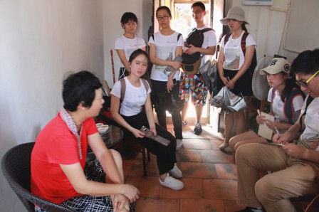 实践队员正在专心聆听蔡阿姨的讲解介绍博物馆的历史和现状