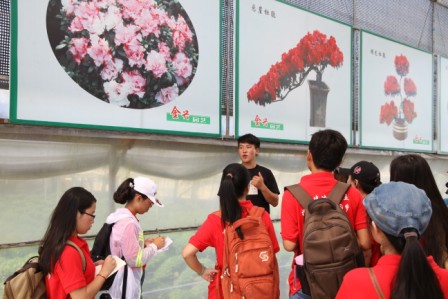 7月23日,厦门大学外文学院“永福镇台湾创业园”暑期社会实践队一行22人走访了闽企金兴园艺发展有限公司,并对公司少董陈麒文进行专访。作为“闽二代”,同时也是90后海归,陈麒文对自家杜鹃花的种植培养与经营有着独到的见解,充满了新一代园艺经营者的创新精神与干劲。 金兴起兮,麒飞扬 说到“闽二代”,就不得不提起“闽一代”。陈麒文目前所在的金兴园艺有限公司由其父陈金才于1995年创立,经营至今已有21年之久,是当地杜鹃花种植的龙头企业。 在开始打理自家生意之前,陈麒文曾在杭州工作,因看到了家乡花卉种植与销售产业的巨大潜力,他放弃了之前的工作,回乡继承父业,学习父辈经验,反复尝试培育,逐渐从一个对杜鹃花知之甚少的“门外汉”成长为杜鹃花种植的“内行人”。如今,只要谈起杜鹃花种植的技巧和经验,眼前这个害羞腼腆的90后瞬间便成为口若悬河的“资深专家”。 当被实践队的泰籍女博士用英文问起除杜鹃花种植外,是否还有其他的爱好,他想了想,用美式发音回答道:“Reading,basketball”,随后直接用英文为大家介绍公司杜鹃花的种植与经营状况。 学成海外兮,归故乡 虽然从小看着父亲种植杜鹃花,但是一开始陈麒文对杜鹃花的培育和经营方式却所知甚少。留美期间,陈麒文学习的是自动化,跟花卉种植和经营都没有直接关系。当被问及为什么放弃所学专业,这个90后大男孩十分坦率:“一方面是因为家里的生意需要人手,另一方面是想融入年轻一代的想法,更好地为公司赢利。他认为先前的一些经营和种植方式已跟不上时代的步伐。比如,宣传力度不够、产品缺乏创意、品牌效应弱等。” 这个90后新型“园丁”坦言,虽然自己“平时贪玩,心性不定”,但是为了将园艺生意做得更红火,他也着实下了一番苦功夫。除了通过网络等渠道加强杜鹃花的产品宣传外,陈麒文坚持从提高自家杜鹃花的品质入手,针对种植和经营过程中的具体问题提出详细的应对措施和改进方案,并与福建农林大学、中山大学、华南农业大学等高校和其他科研机构合作研发,制定应对不同病虫害的措施方案,且根据不同品种杜鹃花的特点尝试不同的造型等。此外,留美归来的他有着国际视野,积极学习国外的经验,曾远赴比利时、荷兰等国学习杜鹃种植技术,将公司的杜鹃花销往全国各地和越南、新加坡、马来西亚等国,并从日本等国引进杜鹃花新品种,进行试种,取得了良好的经济效益。在杜鹃花的市场推广方面,90后的他盯准了时下正热的迷你盆栽市场,将杜鹃花“缩小”,做成迷你盆景,颇受年轻人的欢迎,创造性地开拓了杜鹃花销售市场。 共创家园兮,谋发展 如果说踏实创新是陈麒文在经营过程中表现出来的一大特质,那么合作共赢便是他这个新一代“园丁”所追求的理想经营状态。当被问起自家的杜鹃花种植和经营有什么优势时,这个耿直的90后笑了笑:“我不觉得有什么优势。”随后又一板一眼地补充道,“如果有的话,那就是合作吧。把各种特色的花结合起来,把永福的花和茶种植、经营结合起来,既可以减少成本,又可以发展休闲农业,吸引游客。”也许这就是他所说的优势――合作共赢。 除了与当地其他花卉种植和经营企业合作之外,金兴园艺还为相关专业的大学生提供实习岗位,对从事花卉种植的员工进行技术培训,制定严格的培育标准,以保证杜鹃植株的质量。这样一来,既解决了相关人才的就业问题,又保证了公司的花卉质量。 对90后“新型园丁”的专访在愉快的氛围中结束。我们从陈麒文身上看到了“闽二代”锐意创新的精神,也看到了海归赤子对祖国和家乡割不去、舍不下的情感。  陈麒文介绍公司概况