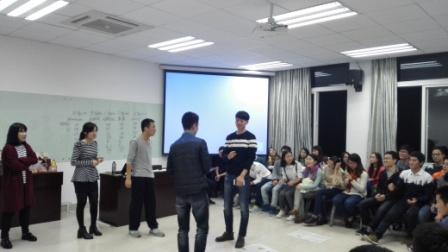 为了扩大同学们的交际圈,在不同学院间搭起沟通交流的平台,12月20日晚上7点15分,外文学院、航空航天学院机电系和信息科学与技术学院通信工程系2015级研究生班在外文学院南光三515室共同举行了跨学院联谊晚会。 由于参与人数较多,班委们首先将同学们分为五组,分组之后,三个班的班委依次为大家表演准备好的节目,现场气氛立刻就活跃了起来,班委们出色的表演引得大家交口称赞。 接下来,在外文学院班团委的带领下,大家玩起了小游戏“萝卜蹲”、“抢凳子”、“一站到底”和“成语接龙”。所有游戏实行积分制,在尽情娱乐的同时,小组间也展开了较量。 第一个游戏“萝卜蹲”是晚会的破冰环节,每组都有固定时间三分钟,每个人以颜色为代号,时间到后淘汰人数最多的小组即输。整个游戏过程中,同学们憨态可掬,惹得彼此捧腹大笑,彼此的关系也在游戏中不知不觉拉近了。 第三个游戏“一站到底”将晚会气氛推向高潮。该游戏分为3轮,每轮每组派出三人,共15人答题。来自三个学院的同学们踊跃抢答,反应敏捷,展示出了他们平时丰富的知识积累和过人的才华。 游戏结束后,外文学院班团委根据各组积分排名为其颁奖。第一名获得“最佳默契奖”,最后一名获得“最不佳默契奖”并接受其他组提出的惩罚,另外三组获“表现平平奖”并接受赢者提出的惩罚。整个颁奖环节中,同学们时不时被风趣幽默的颁奖词逗乐,晚会在一阵阵欢声笑语中接近尾声。 此次联谊活动使得来自三个不同学院的班级之间建立起了友谊,为同学们提供了一个情感交流、拓宽视野平台,同时也促进了学院之间的彼此了解。