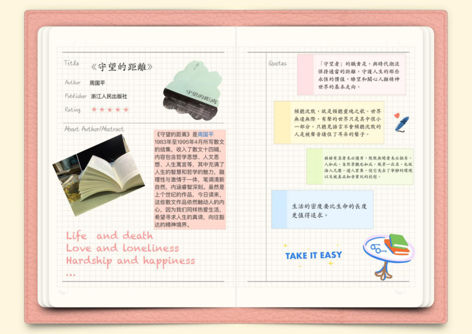 优秀的作者反复推敲,细细琢磨,下笔才有篇篇锦绣、字字珠玑。睿智的读者以己之笔,记触动之字句;以己之思,悟其中之情理。无论是书摘、批注还是整理,每一份投稿都代表着一颗可贵的赤诚的心。
