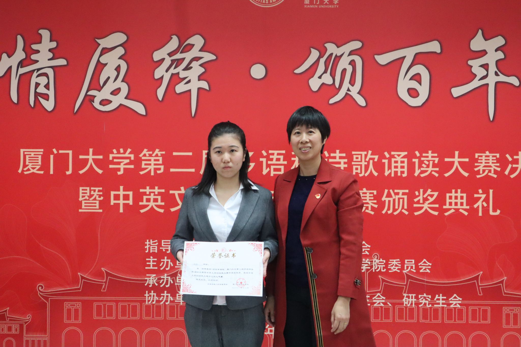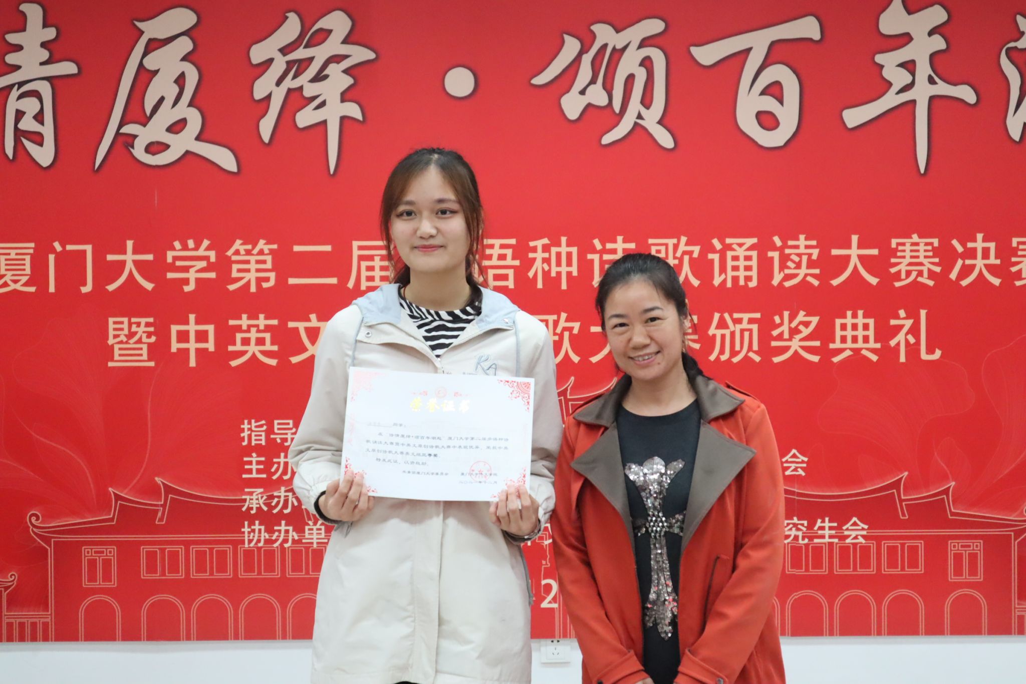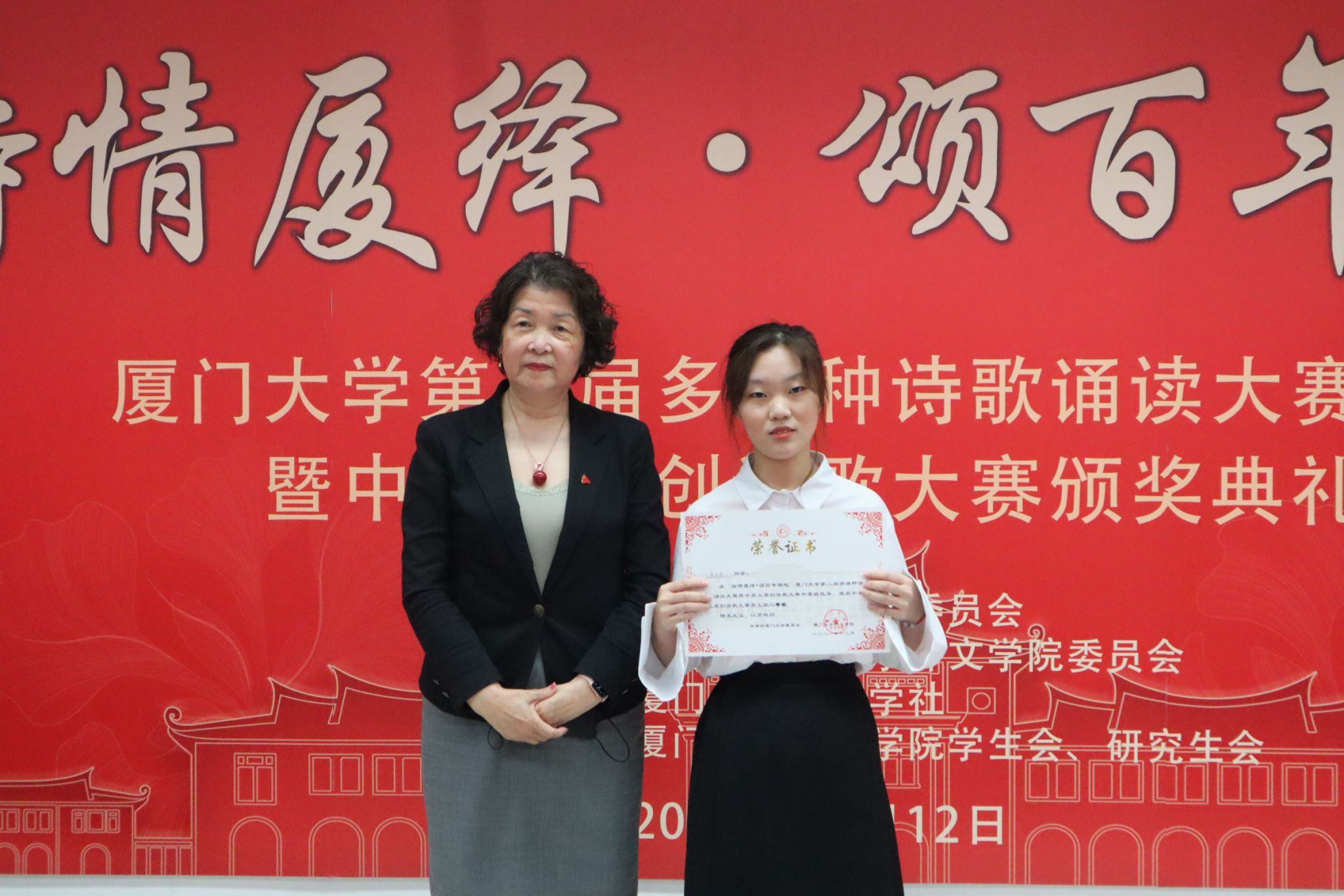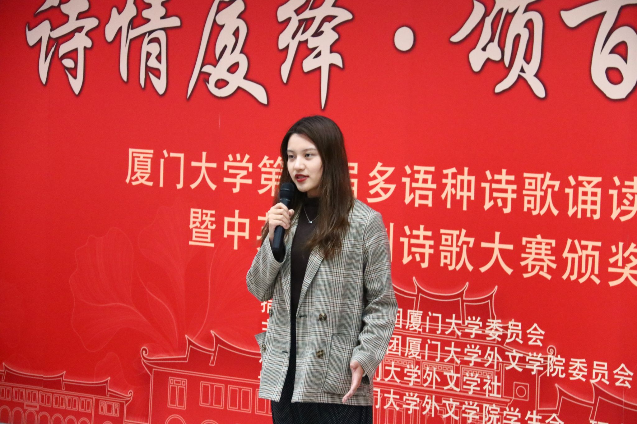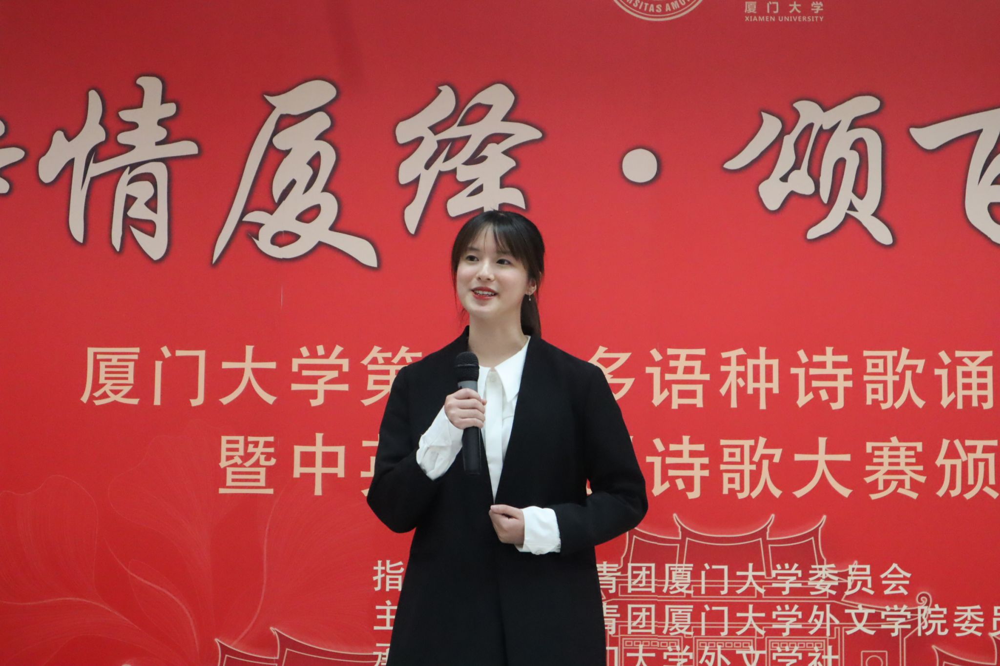 至此,厦门大学“诗情厦绎·颂百年潮起”第二届多语种诗歌诵读大赛暨中英原创诗歌大赛颁奖典礼圆满落幕。此次比赛以建党百年为契机,以多语种诗歌诵读和中英文诗歌创作为载体,鼓励同学们一展诗情,抒发爱党爱国情怀,更为同学们提供了感受诗歌文化、交流碰撞思想的平台。在近半个月的时间里,比赛通过一首又一首的经典诗篇,带全校师生领略了一场诗歌盛宴,更展现了厦大学子积极向上的精神风貌。未来,外文学院将持续推进校园文化建设,引导广大学子感受语言艺术的魅力,绽放青春年华的光彩,为营造校园文化氛围、促进学生综合发展添砖加瓦。