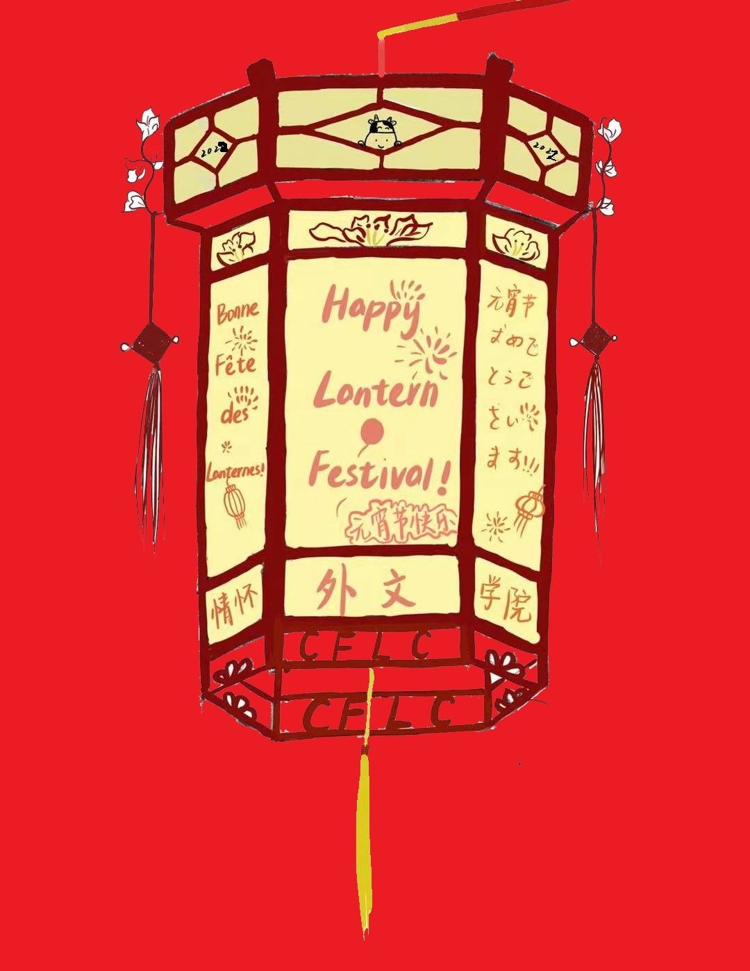 2022年2月,外文学院积极参与厦门大学2022年“我们的节日·元宵”花灯设计大赛暨“云灯会”活动,组织全院师生踊跃参与,外文学院共计提交18份原创作品参赛,其中外文学院工会提交《“一起向未来”(“Together for a Shared Future”)》和《外文华彩》2组原创作品,学生(学生团体)提交《凤凰来仪》等16组原创作品。