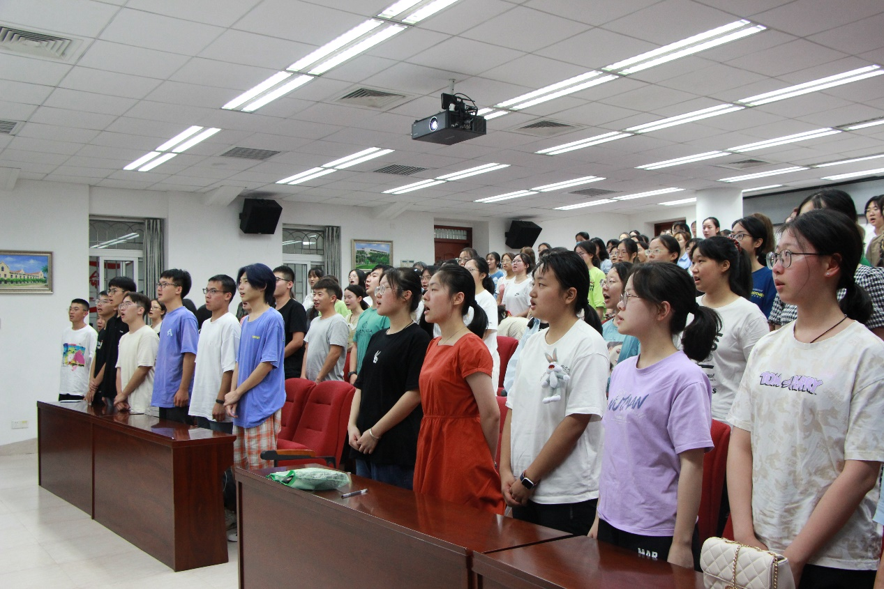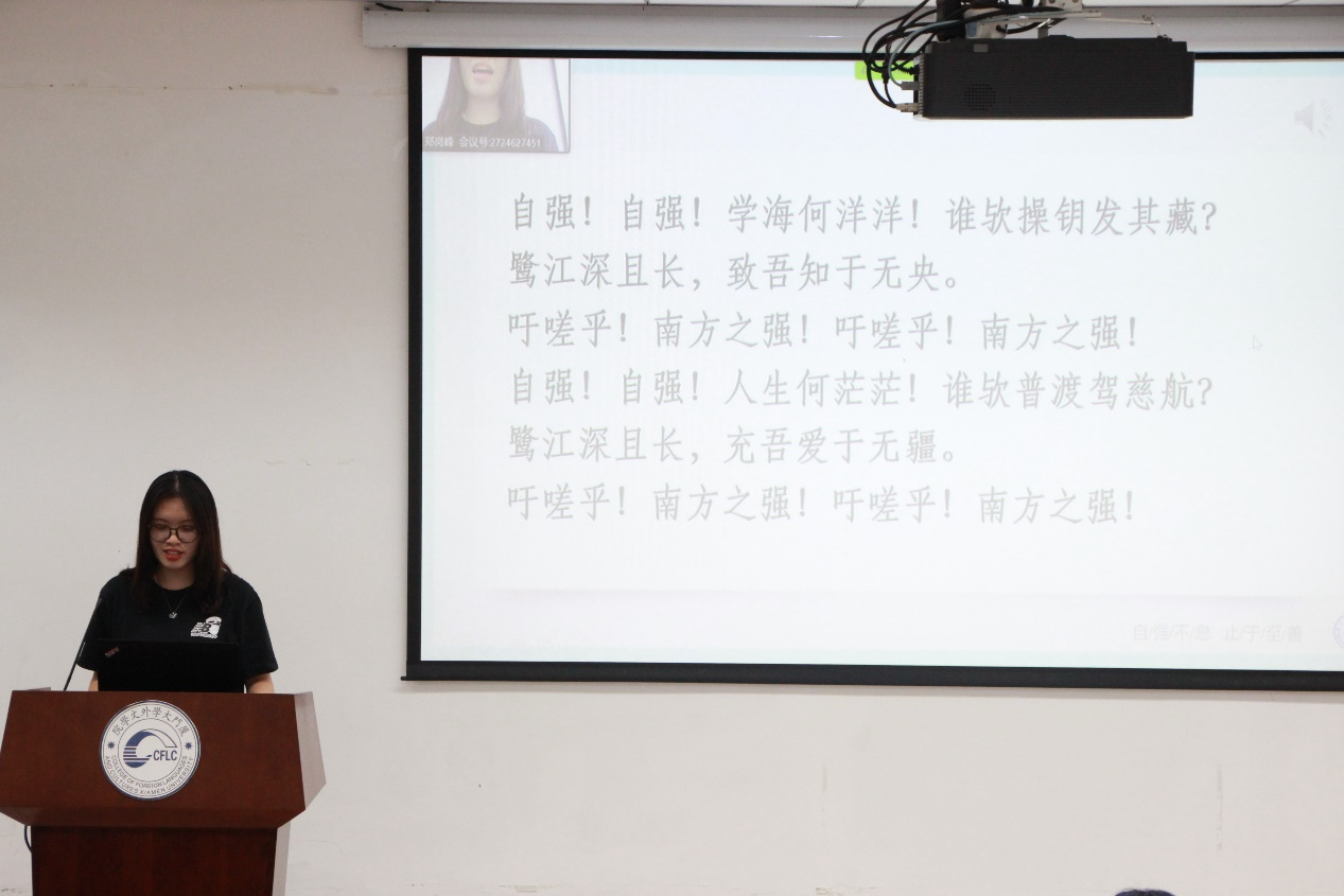 9月10日晚,外文学院2021级新生齐聚德贞楼,在2020级本科生陈沚萱的带领下学唱校歌。在悠扬的歌声中,新生们进一步领会了厦门大学“自强不息,止于至善”的校训精神和“知无央,爱无疆”的理念。
