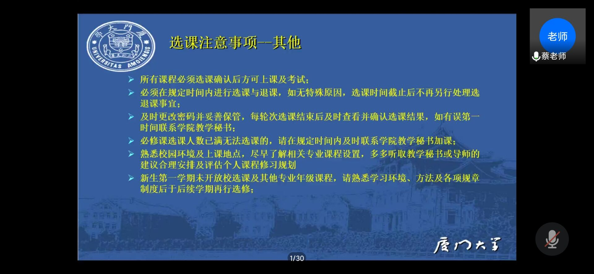 为进一步增进新生对学校、学院相关教学管理规定的了解,教学秘书陈雯娜老师围绕本科生学籍管理规定、转专业规定、双学位教育(主辅修制)办法、创新创业管理办法、本科课程设置、学分要求、选课办法等本科生培养与教学管理工作展开了详细的讲解。最后,陈老师希望同学们能够努力学习,圆满完成本科四年的学业,奔赴心之所向的目标。