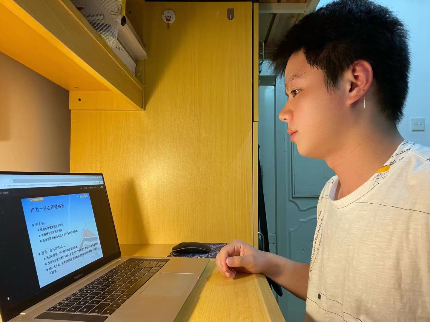 2019级英语笔译硕士研究生王锦文同学说:“通过参加宿舍心理联络员参加线上专题培训,我感受到了学校对同学们的心理健康的重视。在这个快节奏的社会,每位同学或多或少都会有心理压力,我们作为宿舍心理联络员,应该当好宣传体验者、资源协调者、朋辈陪伴者和危机预警者,尽我们所能帮助同学。”