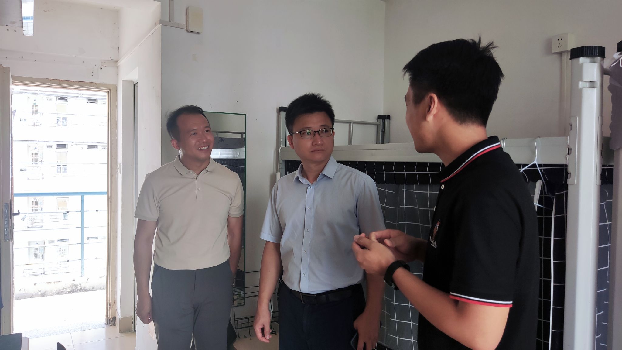 座谈会结束后,学院党委副书记张胜强、副院长辛志英、团委书记吴珊珊、副书记蔡宇走访了全日制研究生新生宿舍,为初抵厦大的新生们送去了亲切而温暖的慰问。老师们与同学们进行了面对面的沟通交流,耐心倾听与解答问题与疑惑,帮助同学们更快适应新环境,顺利地融入外文学院这个大家庭。