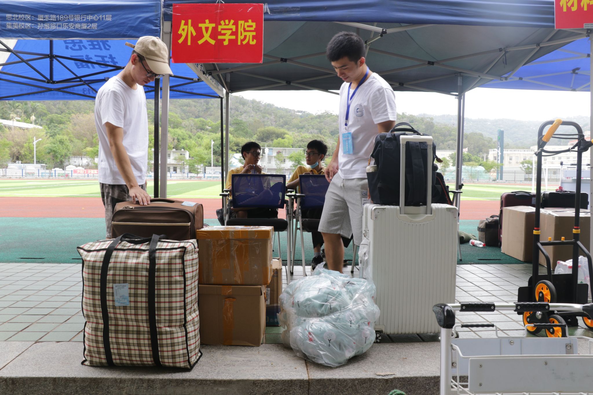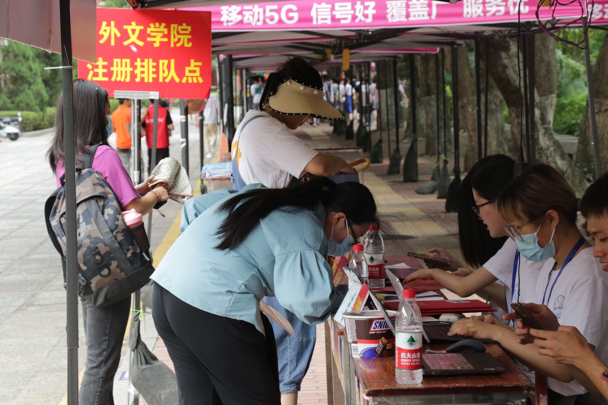 金秋九月,火红的凤凰花如期点亮了厦园的色彩。9月7日,外文学院迎来了2022级研究生新生,迎新注册工作圆满完成。外文学院党委副书记张胜强、沈丽秀,副院长辛志英等领导老师现场参与迎新工作,欢迎新同学的到来。