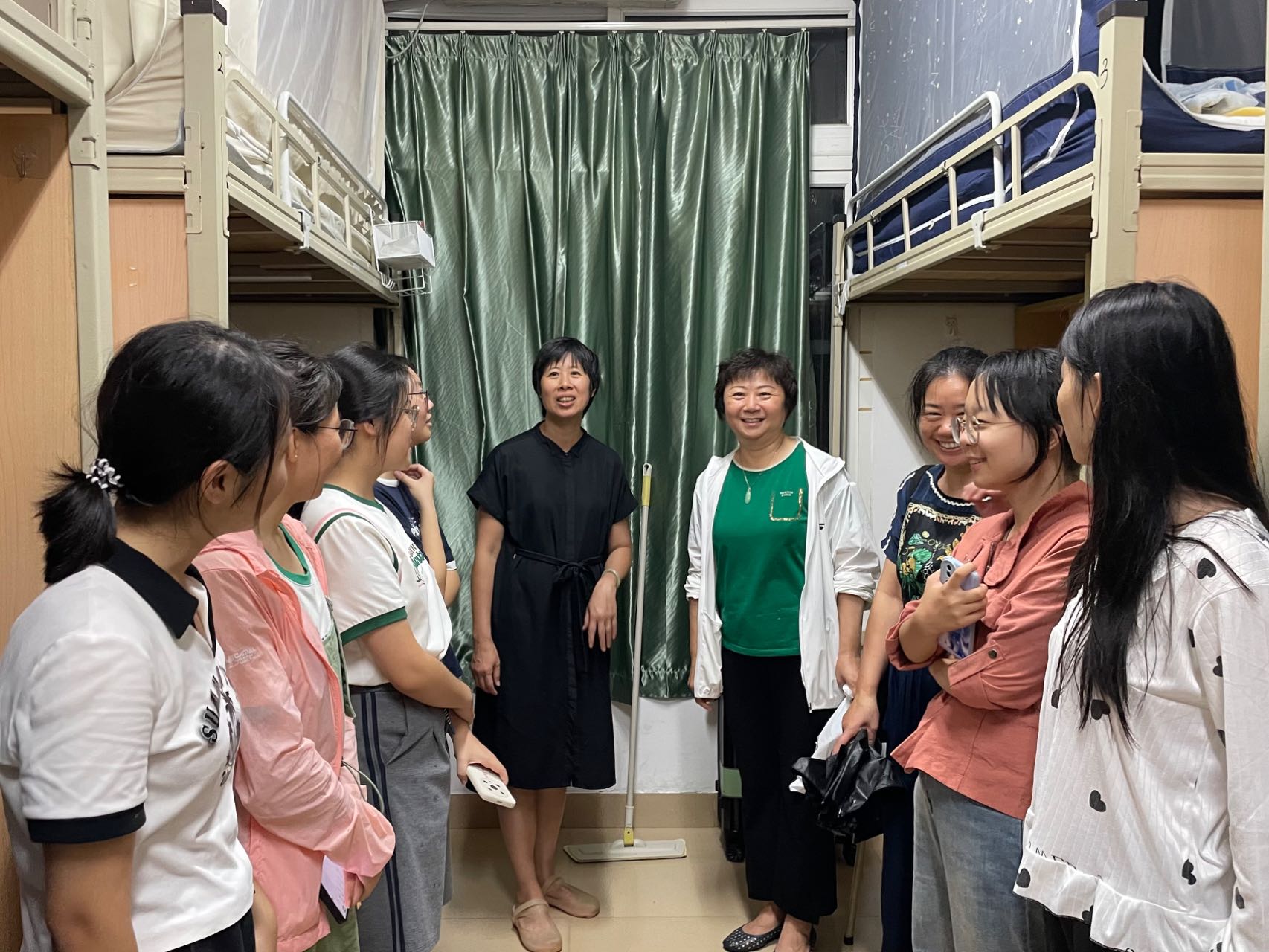 当晚,学院党委书记徐琪,党委副书记沈丽秀,团委副书记戴晓燕等师生深入学生宿舍走访,给新同学送去温暖的问候和关怀。疲惫与不安在欢声笑语中消散,愉悦和期待渐渐充盈这个夜晚。窗外雨声淅淅沥沥,这个秋天,属于2023级外文学子的新景象即将上演。