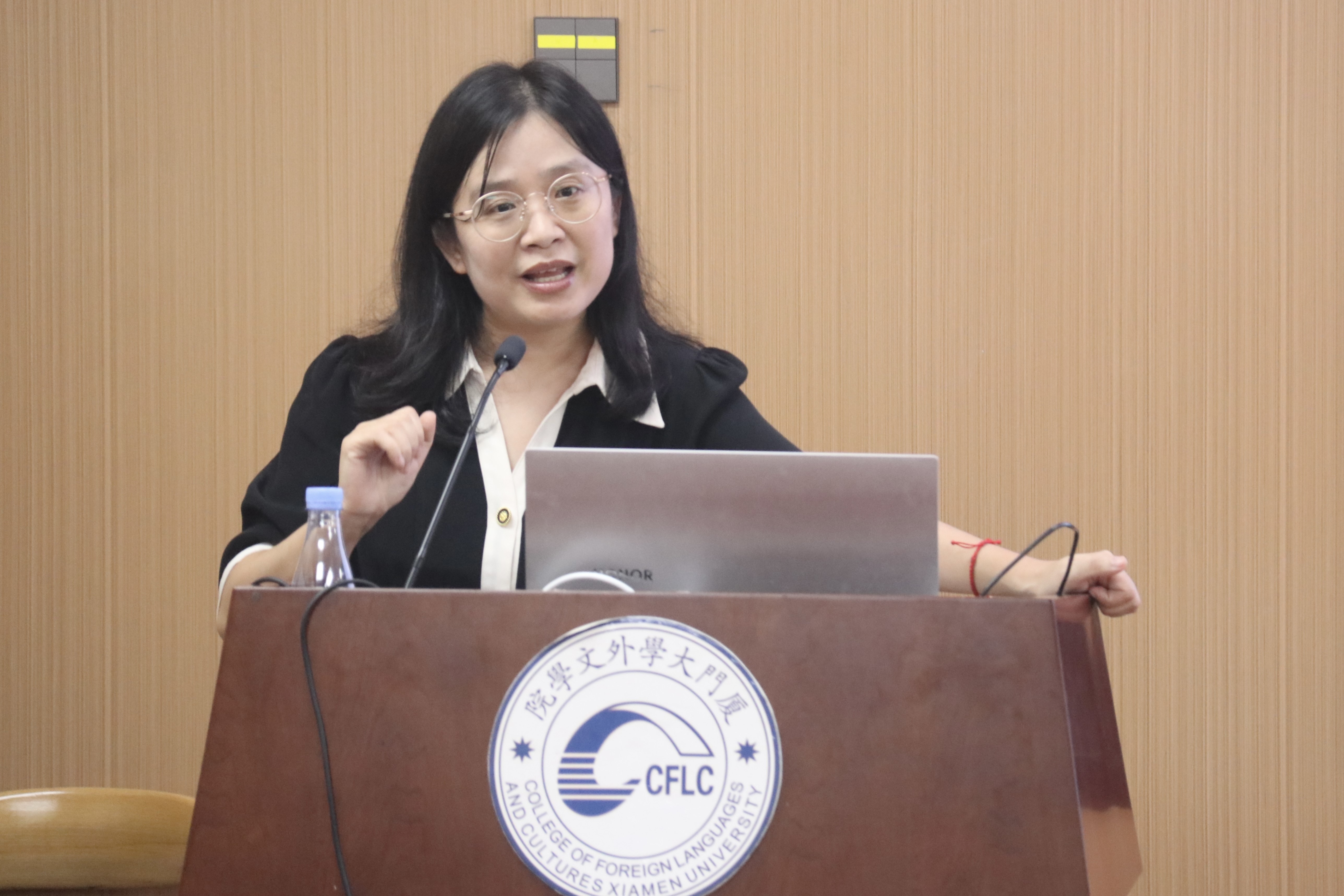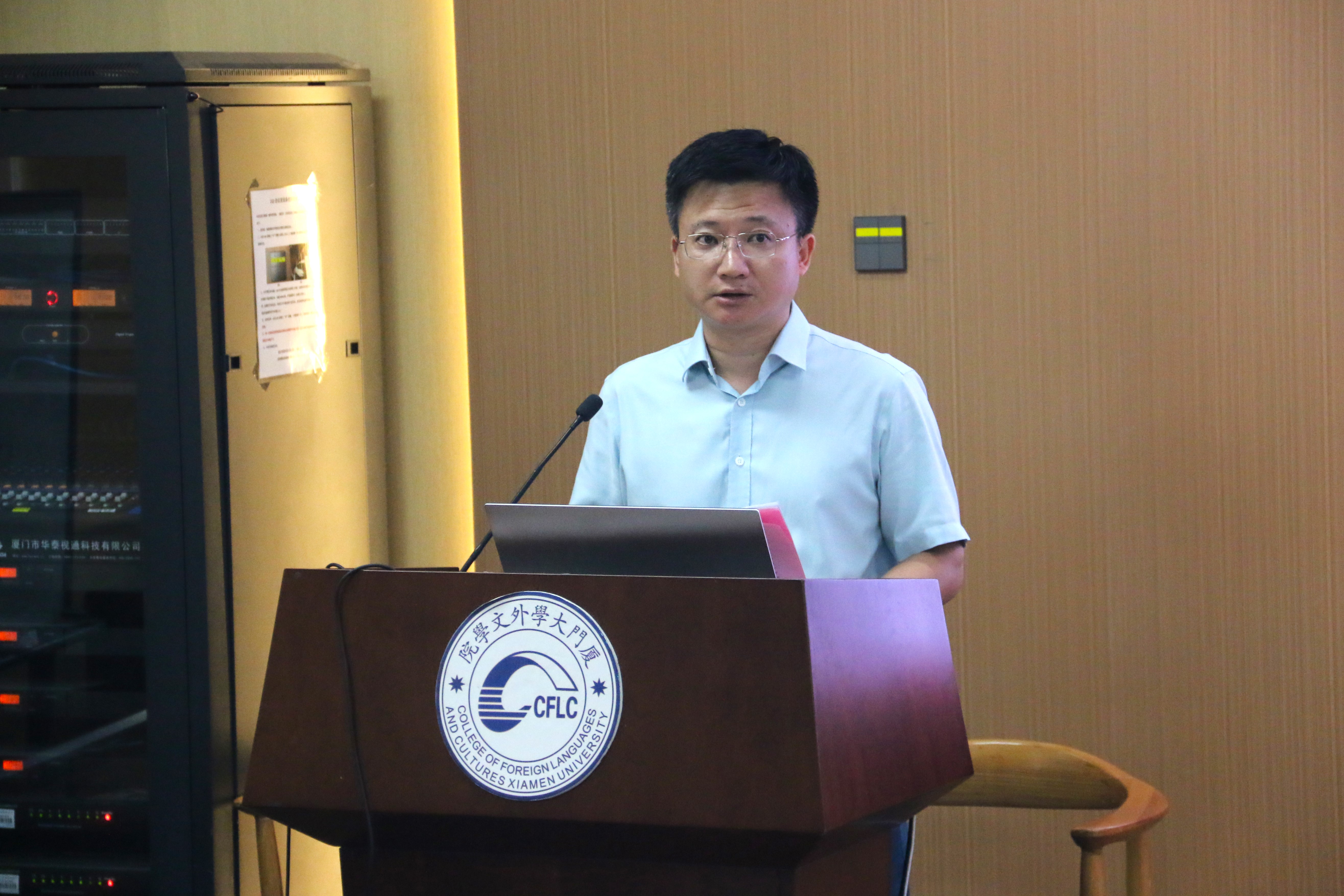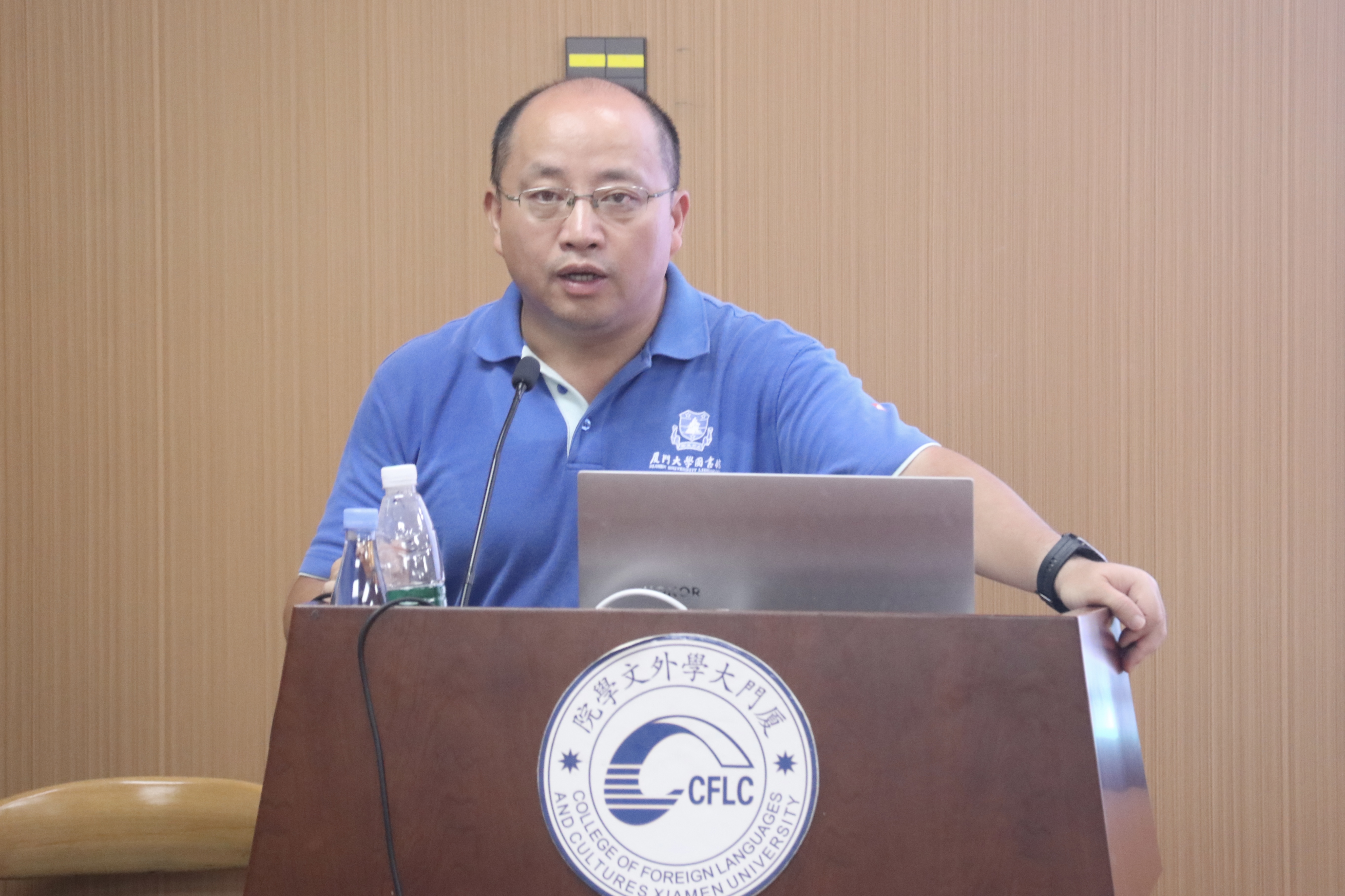 学院党委副书记张胜强围绕“厦大精神、厦大文化”、“百年外文、百年芳华”、“以学报国、不负青春”三个方面作题为“弘扬厦大精神,赓续外文传统,为中华民族复兴伟业贡献青春力量”的生涯规划讲座,希望同学们在研究生阶段始终保持求知若渴的态度,着力培养创新思维,努力成为理想信念崇高、家国情怀浓厚、国际视野开阔、专业素养精深的复合型外语人才。