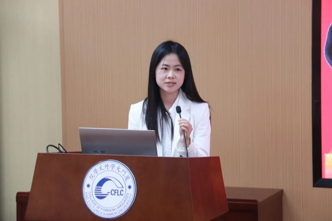 厦门大学第二期“职业体验·大学生社区挂职计划”参与者王楠同学结合社区挂职经历,分享在社区的所见所闻所思所想,着重介绍“社区实践怎么做”。她指出,同学们可以借鉴社区开展主题教育的活动经验并结合学院的实际情况,举办更多符合同学需求、体现外文特色的活动,并期待更多同学能够加入大学生社区实践的队伍。