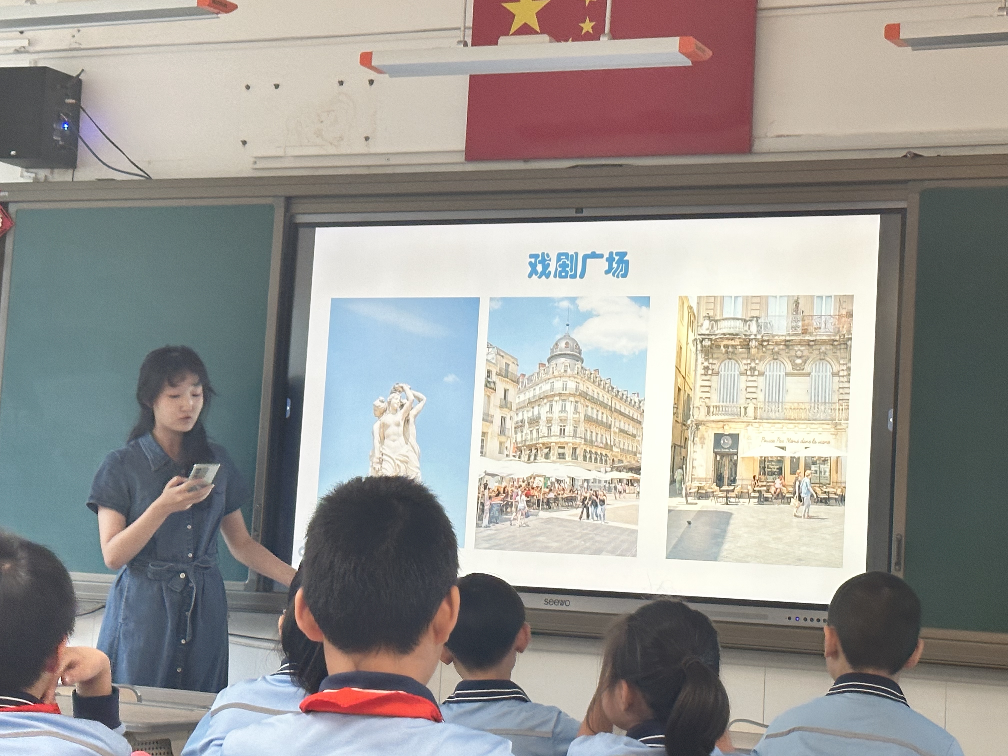 来到演武小学讲课,是一个突如其来的决定。当时只是抱着试一试的心态,我们也未曾想过这个活动能给我带来如此全新的感受和体验。为了兼顾小朋友的认知水平与课堂效果,我们最后选定介绍法国城市,既有趣又能增长见识,我们都期待着孩子们看到美丽的法国城市后向往的眼神。我很喜欢这样的一个形式,在和小朋友们的相处中,我感受到一种最纯真动人的情愫,也让我在讲课的过程中,提升了我的表达能力和素养。