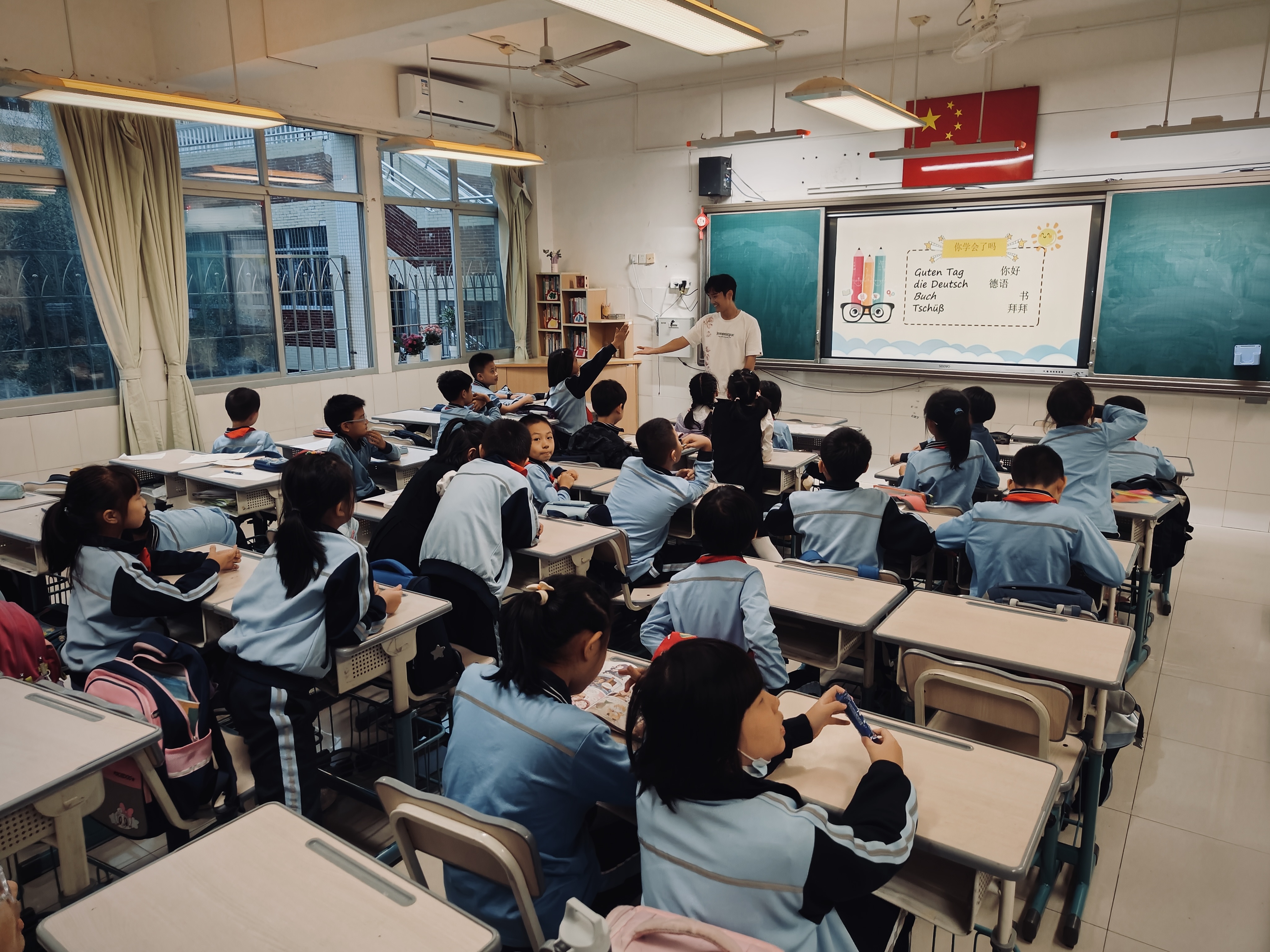 在演武小学的德语素养课已经结束,但小朋友们的欢声笑语仍回荡在我的脑海久久不消散。“Guten tag”“Tschüß”,一个个德语单词在三年级的小朋友口中仿佛被赋予了生命;“贝多芬”“马克思”,一位位德国巨擘激发了小朋友对德语的兴趣。通过本次活动,希望能够拓宽小朋友们的视野,在小朋友们心中种下一颗外文种子。
