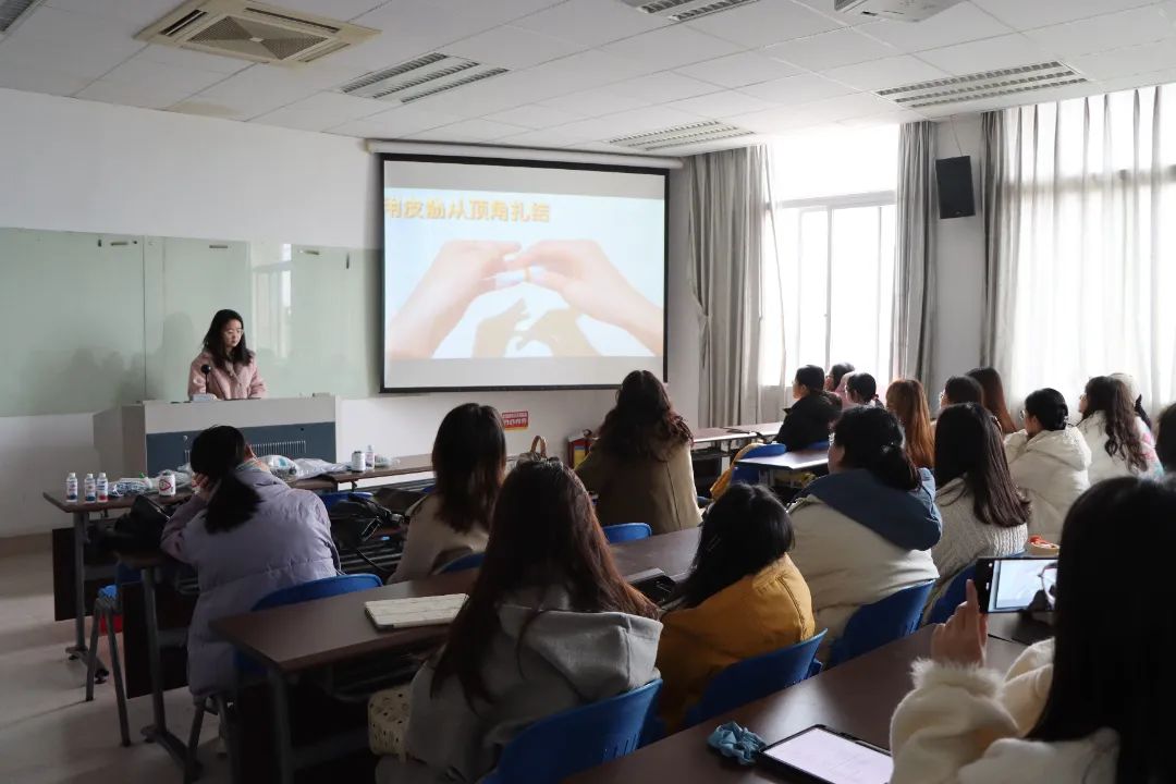活动伊始,主持人简单介绍了扎染的原理,并通过视频向同学们科普了扎染的演变、工艺技术、扎染图案设计要求、扎结技法等知识,帮助同学们更加直观地了解扎染制作过程。