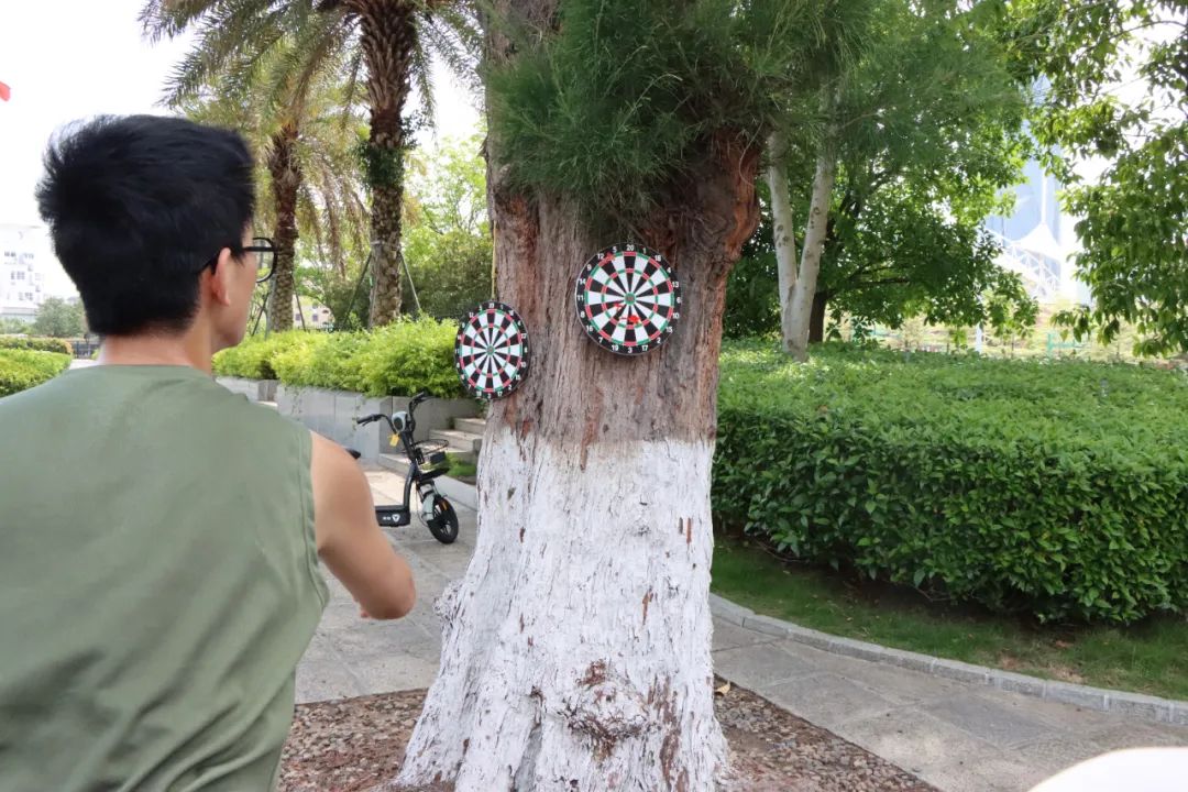 咻咻咻,一支支飞镖在空中划出优美的弧线。现场气氛热烈,选手们好像化身成了武林高手,“刀光剑影之下”,一支支飞镖精确地命中了飞镖盘。