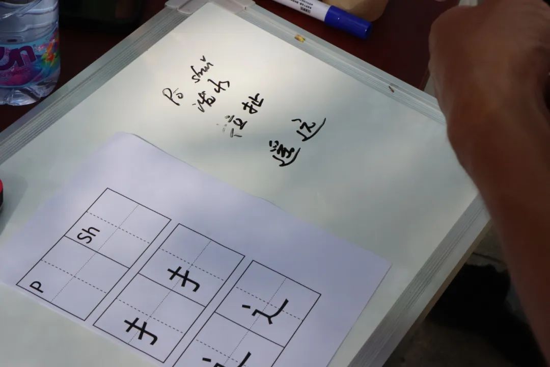在这里,两位选手需要在6分钟内,根据三个写有声母的题板进行组词,并表演给其他队友们,若三道题板猜中两道即为挑战成功。这既离不开临场发挥的脑力,也离不开选手们之间的默契,别出心裁的比划演示让挑战过程充满了欢声笑语。