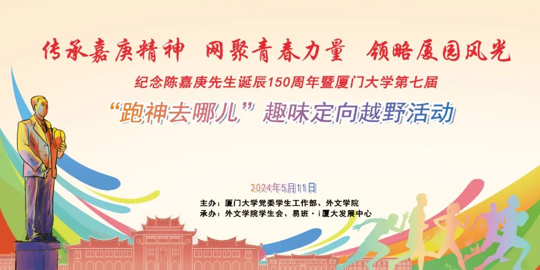 2024年是新中国成立75周年,也是陈嘉庚先生诞辰150周年。百年来,厦门大学始终践行嘉庚先生“教育为立国之本,兴学乃国民天职”的初心,不断向着“世界一流大学”的目标迈进。值此之际,由厦门大学学生工作处、外文学院联合主办,外文学院学生会、易班·i厦大发展中心承办的“传承嘉庚精神 网聚青春力量 领略厦园风光”纪念陈嘉庚先生诞辰150周年暨厦门大学第七届“跑神去哪儿”趣味定向越野活动重磅来袭。本次活动路线设计巧妙,闯关答题环节融入嘉庚精神、校史校情和网络文化等元素,旨在增强同学们的网络素养,营造爱校荣校的良好氛围,领悟嘉庚精神“忠公、诚毅、勤俭、创新”的深刻内涵。