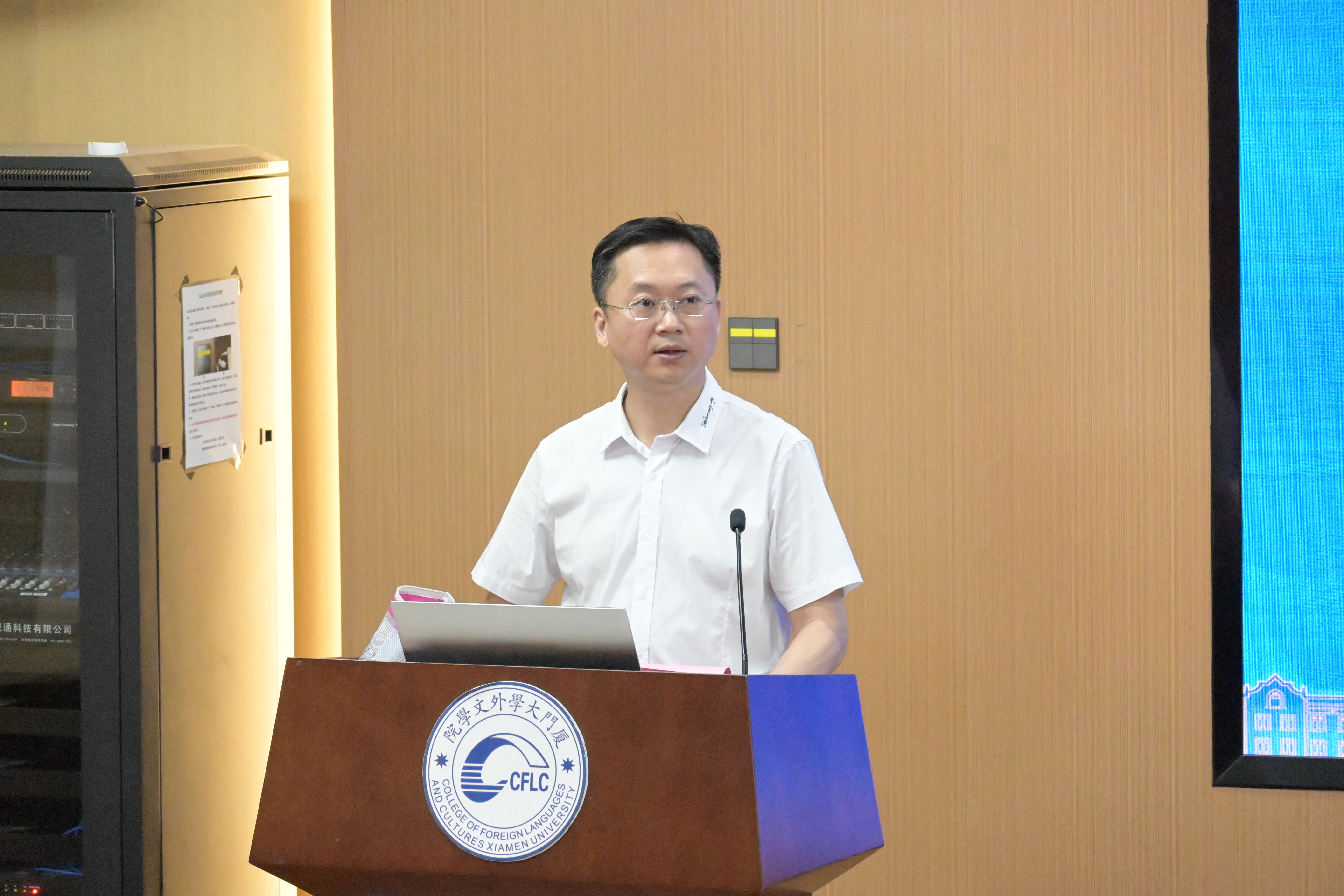 厦门市公安局出入境管理局政委陈咏兵、副支队长熊琦、教导员叶妙虹、副大队长白慧源,厦门大学研究生院培养与管理办公室副主任邱文华,外文学院党委书记徐琪、院长陈菁、党委副书记沈丽秀、英语语言文学系主任苏伟、德语语言文学系教师代表杨耘硕等出席本次活动。大会由外文学院副院长辛志英主持。